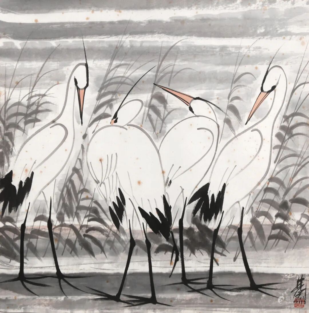 丁衍庸 荷塘鸳鸯 (已故画家黄家力旧藏)