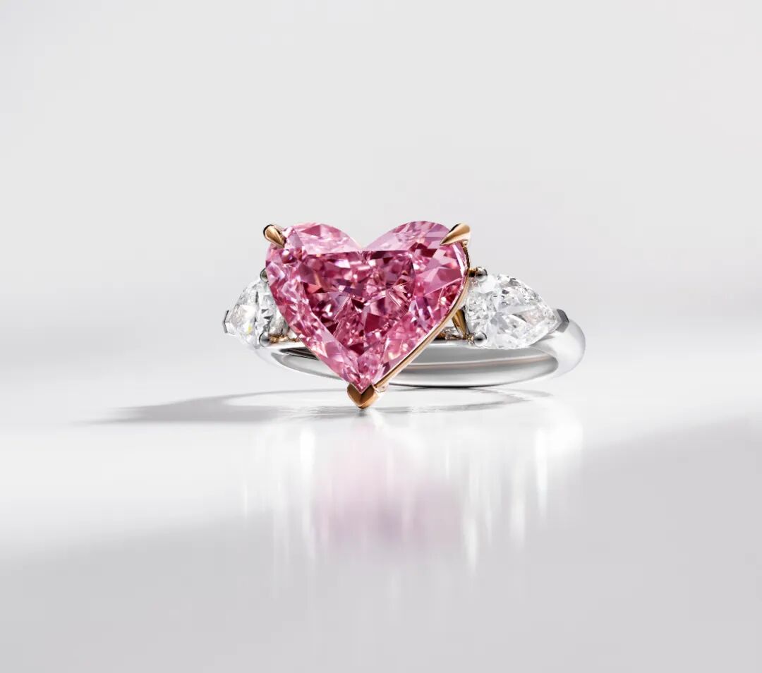 5.02克拉浓彩紫粉色钻石配钻石戒指