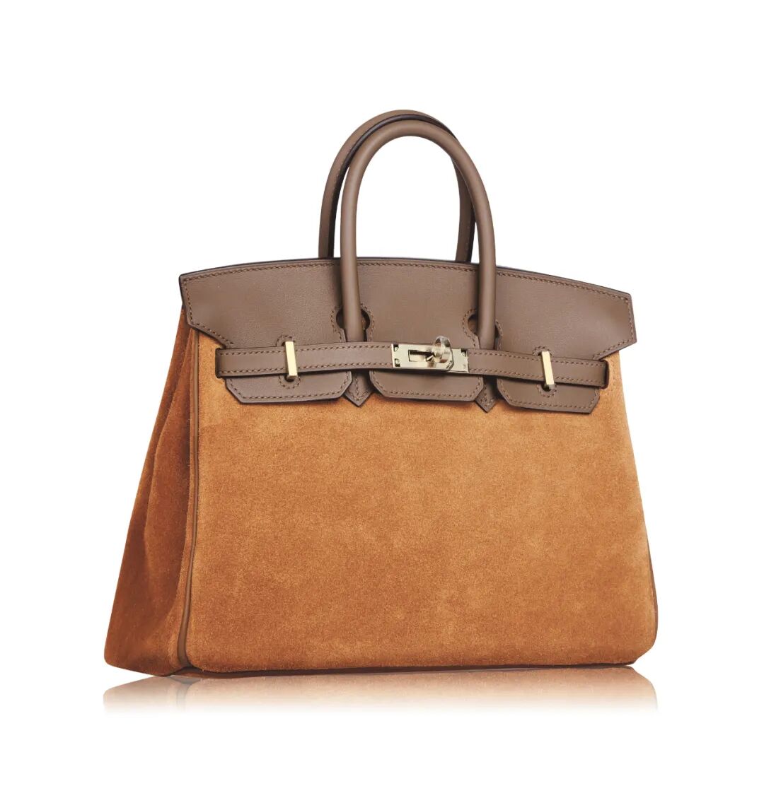 爱马仕 2021年 栗子色牛皮及麂皮25公分铂金包附淡金扣金属配件
