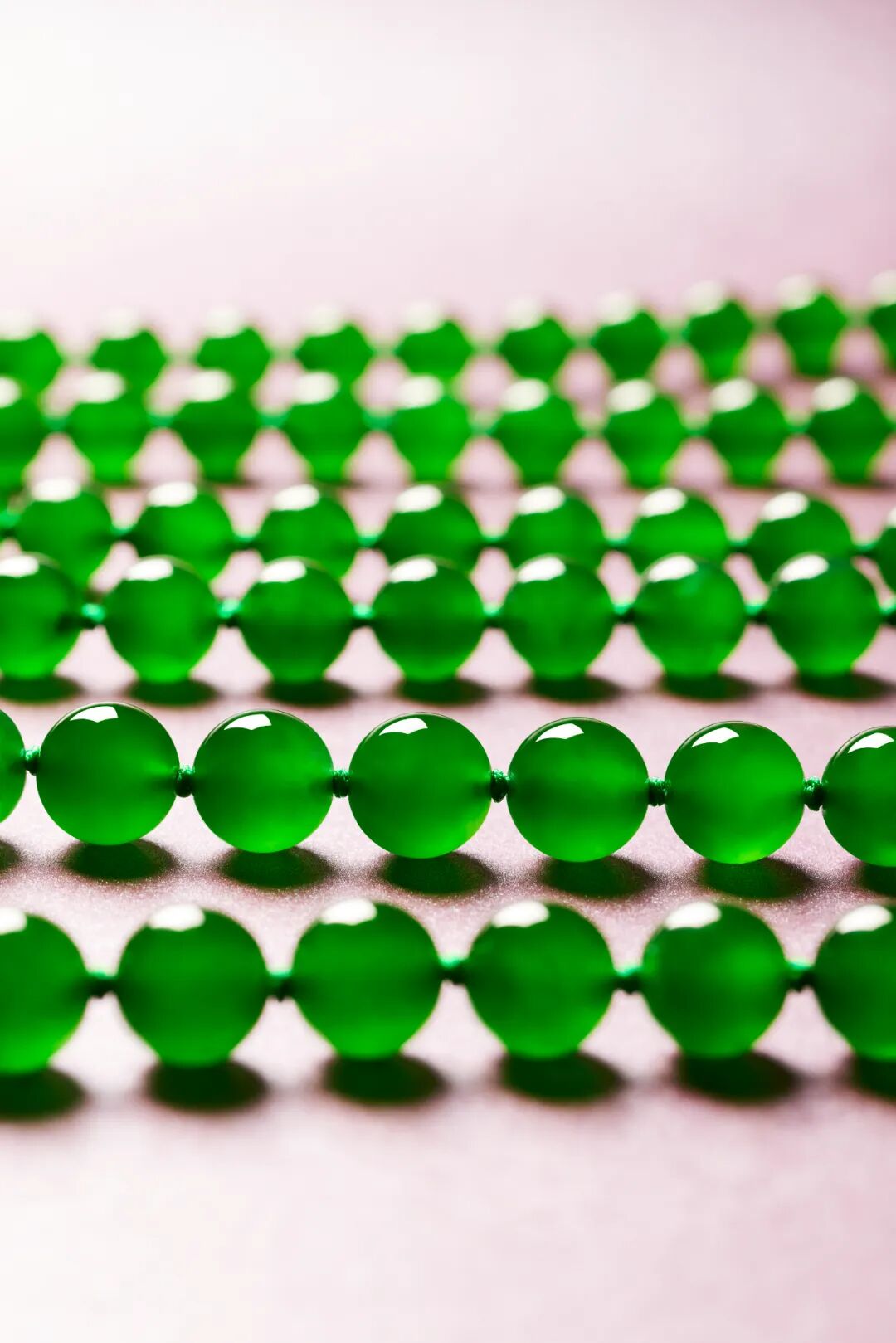 珍罕的108颗天然满绿翡翠珠配红宝石及钻石项链