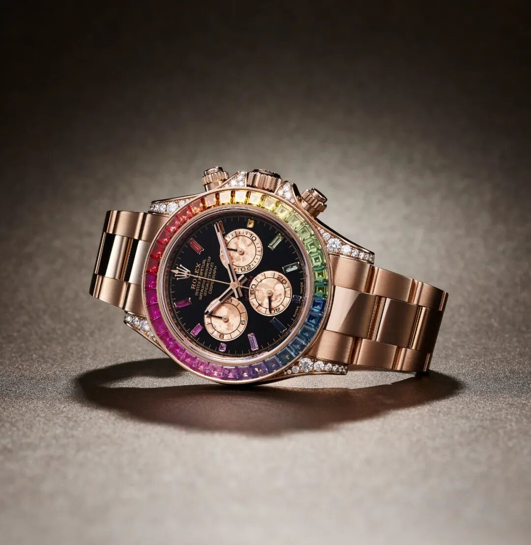 劳力士 宇宙计时彩虹迪通拿系列,型号116595RBOW 18K黄金镶彩色宝石自动上弦腕表 计时功能