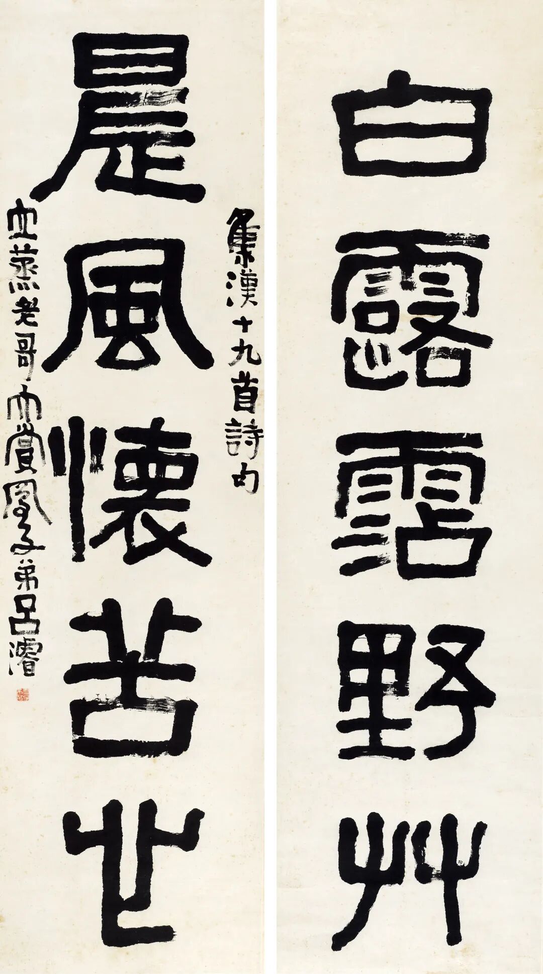 款识:白露霑野草,晨风怀苦心。集汉十九首诗句。立蒸老哥大赏,凤子弟吕濬。