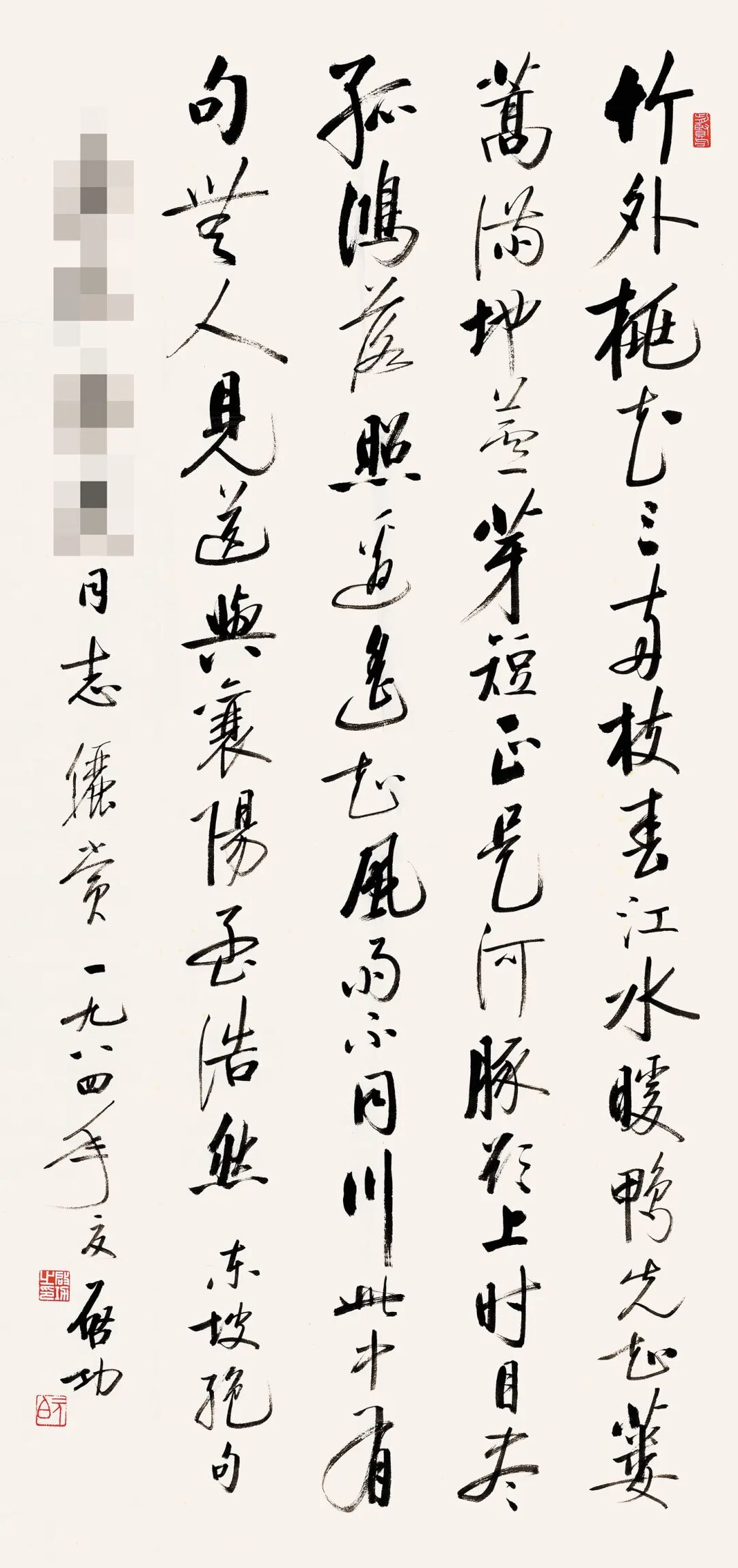 款识:东坡绝句。□□、□□同志俪赏。一九八四年夏,启功。