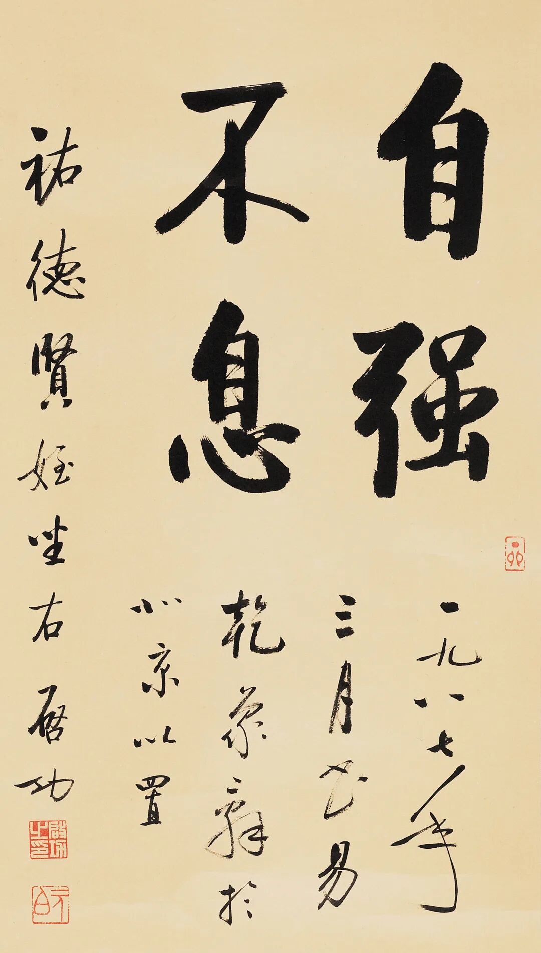 款识:一九八七年三月书《易乾象辞》于北京,以置祐德贤姪坐右。启功。