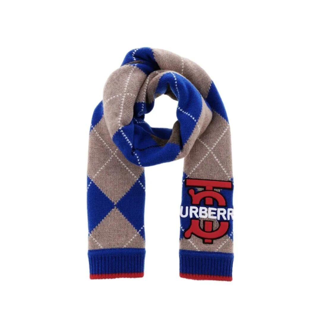 巴宝莉 蓝色羊毛格纹围巾