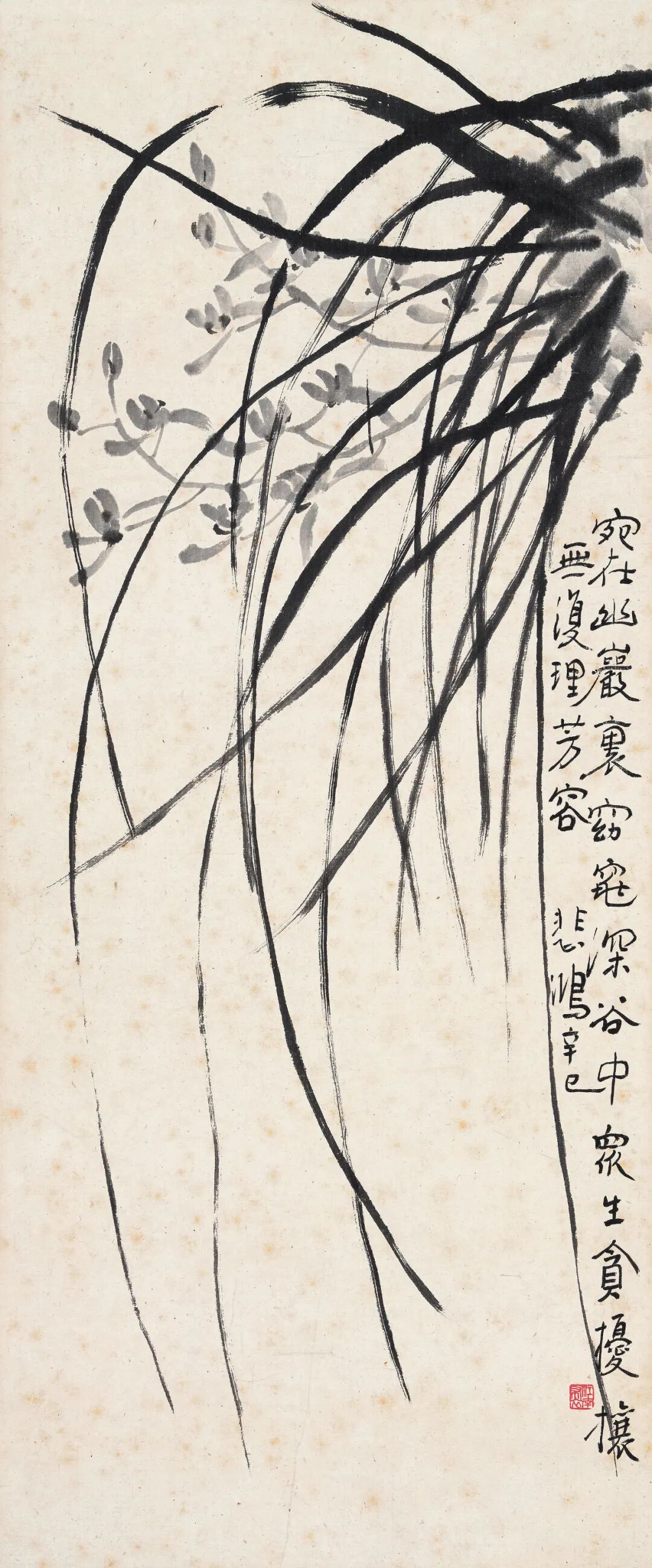 【题识】宛在幽岩里,窈窕深谷中。众生贪扰攘,无复理芳容。悲鸿,辛巳。【展览】「徐悲鸿在南洋」,新加坡美术馆,2008年4月5日-7月13日。2.《徐悲鸿在南洋》第224页,新加坡美术馆,2008年版【说明】杨启霖旧藏。杨启霖(1917-1998),新加坡著名收藏家,「袖海楼」主人。