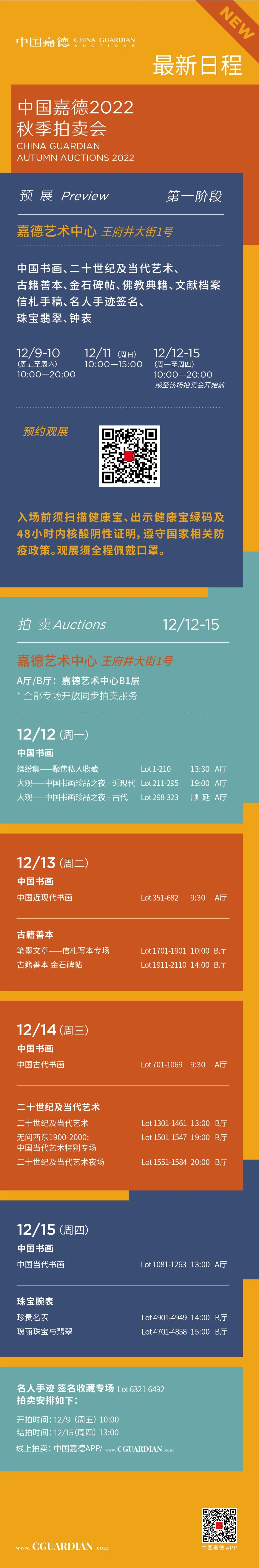 12月9日启幕,中国嘉德2022秋季拍卖会恭请莅临