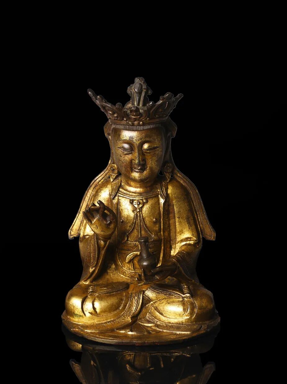 来源:美国新泽西州日裔艺术家 Higashi Norio 先生旧藏,早年移民美国前继承于其日本家族收藏阿育王塔是五代时吴越国王钱(弘)俶效仿阿育王造八万四千塔故事而铸造的一类小塔。这类小塔为方形单层塔,乃仿宁波鄮县阿育王寺释迦舍利塔而铸,是异域佛塔的造型。诸塔的形制大同小异,塔身均模铸(或镂刻)摩诃萨埵舍身饲虎、快目王舍眼、尸毗王割肉贸鸽、月光王施宝首等四则佛本生故事,惟山花蕉叶上模铸(或雕刻)的内容有别,大部分只是简单地装饰坐佛和护法力士,少部分装饰佛传故事。阿育王塔实物,多出土于吴越国境内的佛塔,河北定州、河南邓州北宋地宫发现的铁阿育王塔应与钱俶两次进京有关。可参考浙江金华市万佛塔出土的五代铜鎏金阿育王塔,浙江博物馆藏(图1.)。此炉高足,收颈,沿口微向外翻,两侧有龙耳上翘,清新雅致,借鉴青铜礼器鬲式炉型制加以简化。炉两面开窗,刻阿文「阿拉为唯一真神」,刻字刀法洒脱利落,字形轻盈飘逸。炉皮壳内外打磨光滑,泛红的茶色与局部鎏金将相呼应,沉实润莹,古拙雅韵;炉身厚重,三足鼎立,亦称阿文三足鼎,是官造炉中的妙品。底錾刻「大明正德年制」四字款,极为工整,端正庄严。