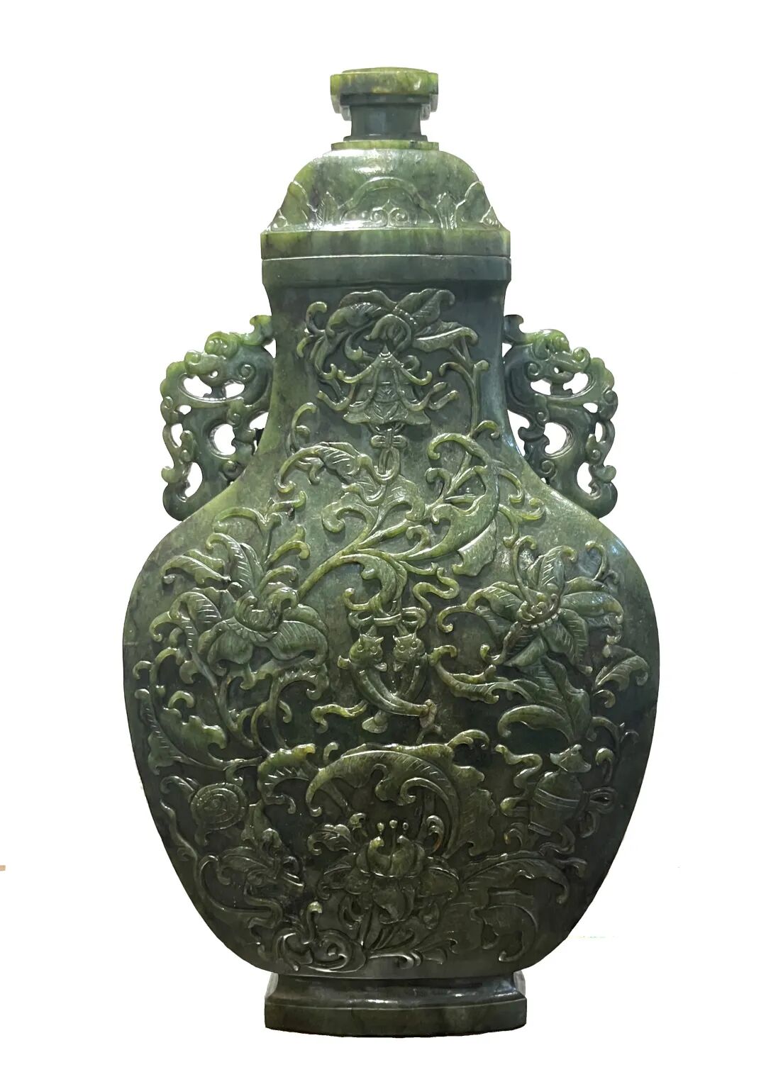 美国加州拍卖(CAA Auction Gallery)本年度的收官之作「格古聚臻 - 十周年年末亚洲古董艺术精品拍卖会」将于北京时间12月11日上午7点举槌。此场集中呈现共计349件拍品,种类繁多,来源有序,年代跨度大,主要搜集自全美各地的私人家族或重要古董商的收藏。当中亮点包含:旧金山藏家于1990年前收藏的张大千《松下高士图》;新泽西州藏家 Higashi Norio 先生旧藏宋代阿育王塔;洛杉矶本地荷兰裔藏家收藏明清瓷器一组;麻州波士顿藏家旧藏清乾隆大型碧玉八吉祥赏瓶; 洛杉矶本地企业家家族藏翡翠珠宝及宝石集萃(第二部分);纽约私人收藏青花粉彩八吉祥纹瓶一对;以及来自不同藏家的清代白玉雕作品精选等。联拍在线将全程直播,并提供实时同步竞拍技术与服务支持。来源:美国波士顿市私人收藏, 1992年前购于香港此赏瓶精选整料和阗碧玉雕成,覆盖合唇,形制硕大,质地致密莹润,抛光工序一丝不苟,墨绿之色凝脂均匀,莹润有光,尤显尊贵。器分盖与身两部分,盖略高作覆钵式,外壁饰如意纹一周,顶上圆雕方形钮。瓶口呈椭圆形,扁圆腹,斜腹下收,下承圈足。颈两侧各雕一镂空夔龙耳。瓶腹部两面以剔地浮雕法满雕八吉祥纹饰配以缠枝莲纹,延申至颈部,大小花叶繁茂交织,却毫无凌乱繁缛之感,极富立体感。本品用材之奢,雕琢之华,充满了浓郁的宫廷气息,极具乾隆宫廷玉作之风范。商代前期,青铜器的组合体制以酒器为主,有爵、斝、觚、尊、壶等器物,其分类按使用者地位和需要而置;明代宣德时期,由于博古图的现世,带动整体仿古之风;至清代,宫廷玉制品生产达到高峰,因乾隆帝的喜好与提倡,使宫廷艺术呈现浓厚的仿古风格。碧玉古雅苍郁,天然质地,赢得宫廷喜爱,宫廷陈设中出现碧玉瓶、壶、炉等仿古玉器物,造形千姿百态。类似大小(30公分以上),技法工艺,纹饰稍有不同,但同为乾隆时期仿古创新形制之风格的碧玉瓶,可参考台北故宫博物院藏清乾隆碧玉兽面纹瓶(图1.),北京故宫博物院藏清代碧玉夔龙纹夔龙耳活环瓶(图2.),和英国维多利亚阿尔伯特(V&A)博物馆藏清代碧玉缠枝莲纹瓶(图3.)。