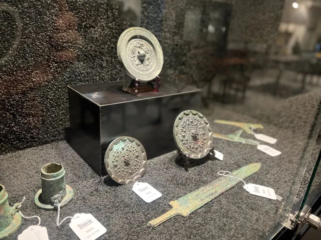 来源:洛杉矶好莱坞电影导演家族收藏,2000年前购于南加州及亚洲等地镜呈圆形,半球钮,圆钮座。钮座外饰高浮雕龙虎纹夹钮盘绕,龙虎瞪眼张口,凶猛相对,龙身乳丁密凸,虎身压于钮下,伸出二肢及卷尾,线条流畅清晰,形象生动。内区铸有二十字隶书铭文。铭文外圈饰短线纹,镜缘厚实,向内略微倾斜,缘上饰锯齿纹,作双圈放射状,又双圈锯齿纹间饰弦纹及水波纹。本镜铭文铸刻字体端整流畅,全器黑漆古朴稳重,保存十分完好,极为珍贵稀少。类似时期龙虎镜可参考台北故宫博物院藏品,编号:K1A001975N000000000PAB (图1.)。
