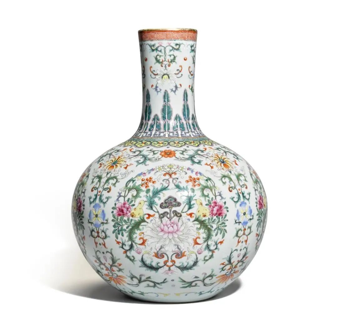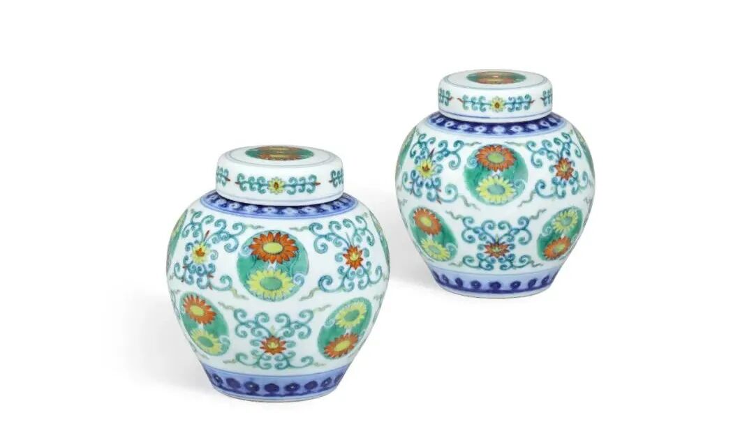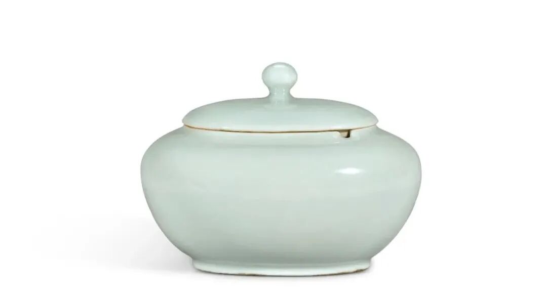 另外的焦点为两件重要私人收藏的宋瓷珍品、一对斗彩番莲团菊纹盖罐、一件气势恢宏的粉青地粉彩瑞芝番莲纹天球瓶和一个雅致的粉青釉水盂连盖,风格各异的几件瓷器色泽纯正、质地饱满,皆为品级优越的物件。