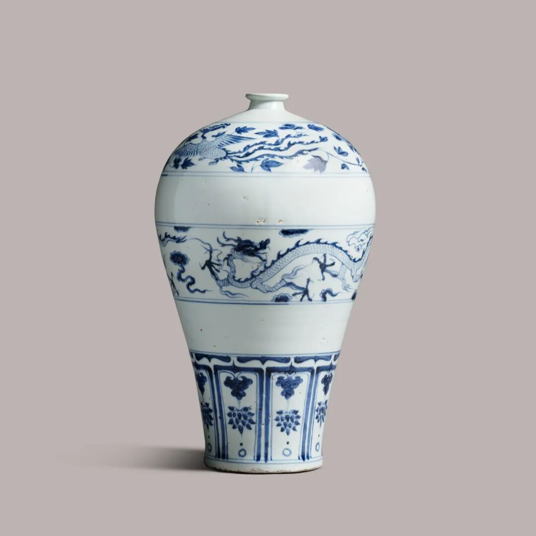 尤为突出的是一件珍贵的青花龙凤纹梅瓶,元代青花大多纹饰繁密满绘,本品却巧用留白技法,而在比比皆是的元代经典龙、凤纹饰中,它同饰的龙与凤纹更显得尤为罕见。在青花市场如此火爆的今日,这件拍品将会带来怎样的精彩表现呢?让我们拭目以待!