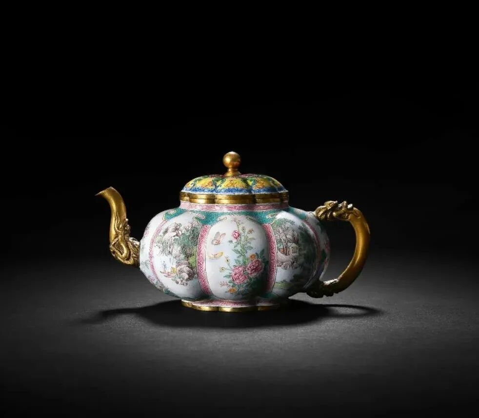 最受关注的当属【世纪华彩——英国Parry家族珍藏中国艺术】专场中的一例御制画珐琅瓜棱式壶,其画工精美、色彩雅致,与它同类的器物已知仅三例,另外两例分别藏于台北故宫及美国纳尔逊·阿特金斯艺术博物馆内,作为专场中重头戏,其拍场表现可是备受期待。
