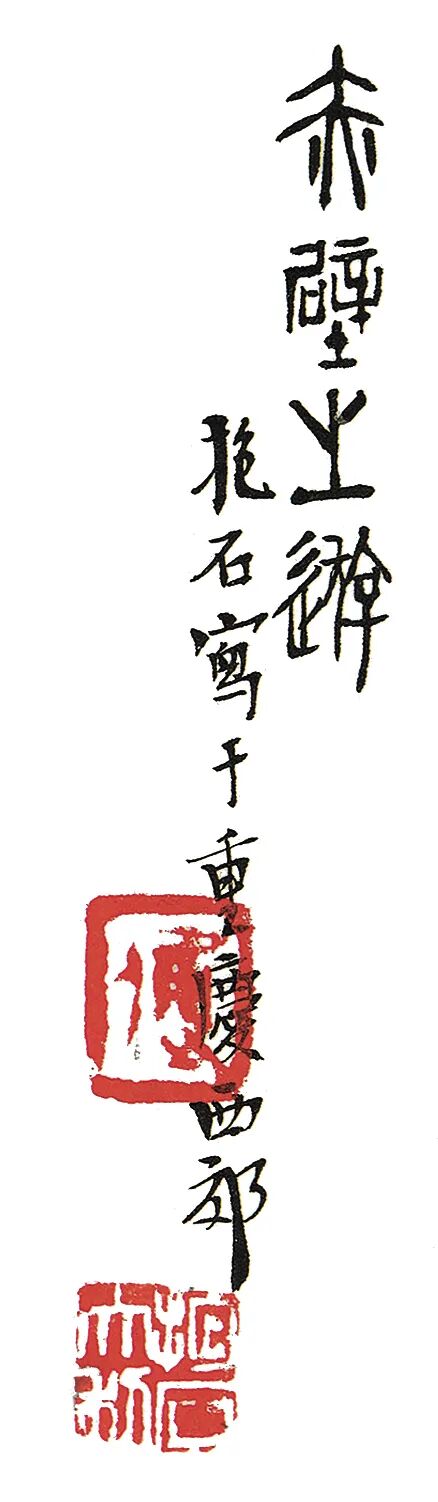 【题识】乙酉六月初二日,抱石写于东川金刚坡下山斋。