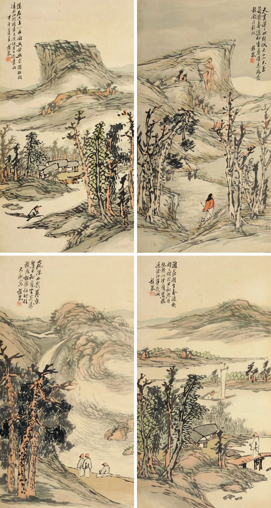 程廉山水四屏