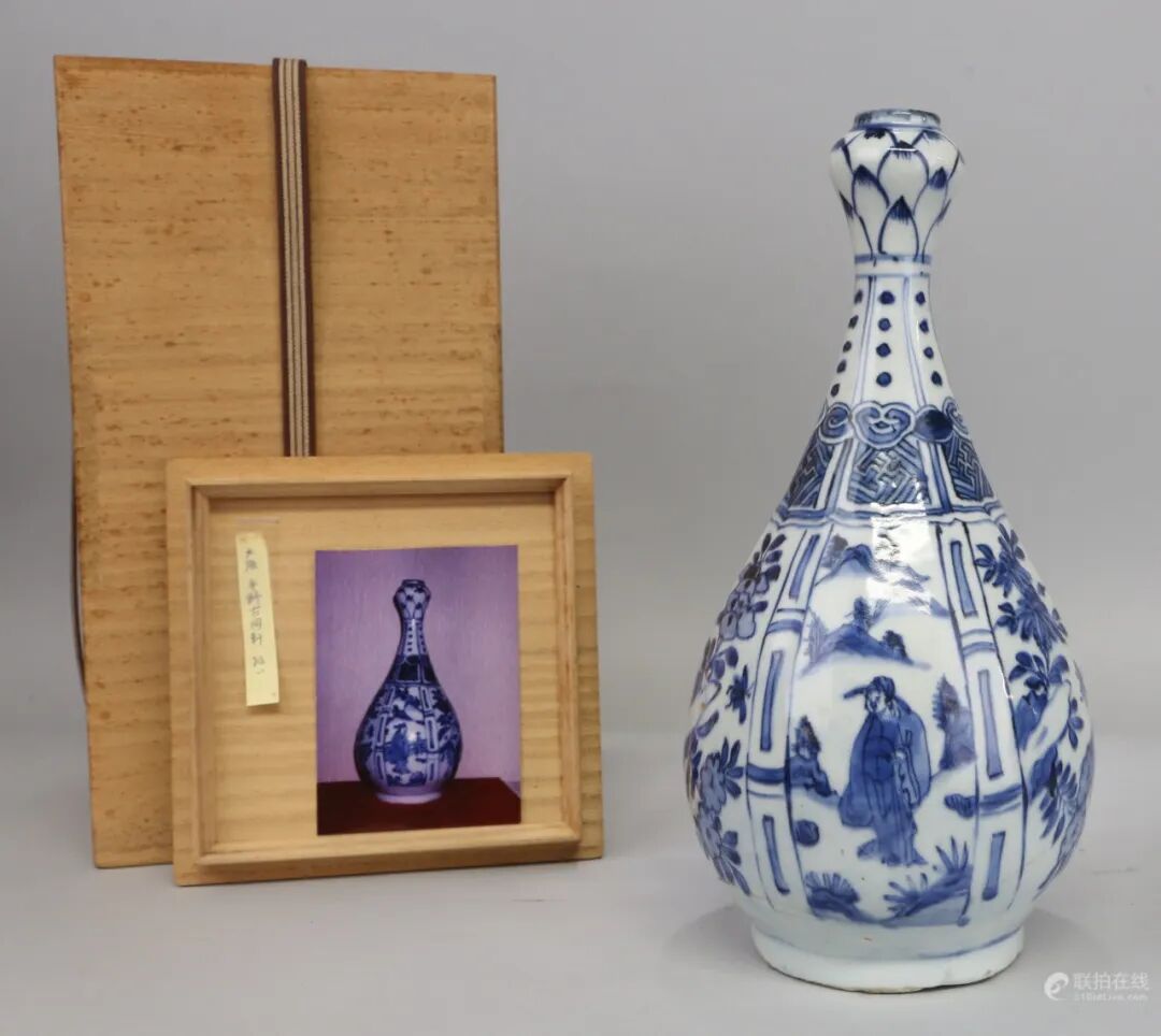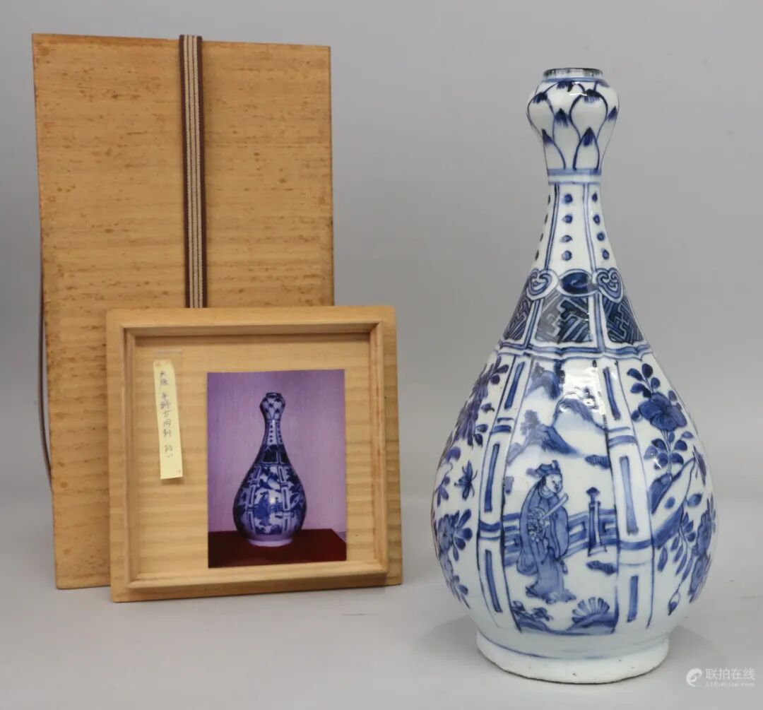 明崇祯 高士人物蒜头瓶