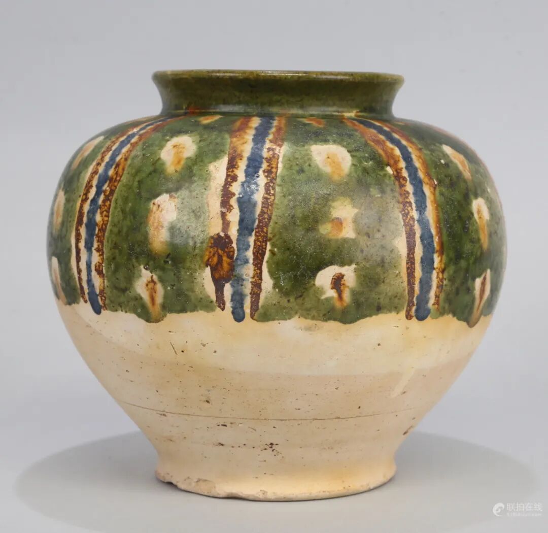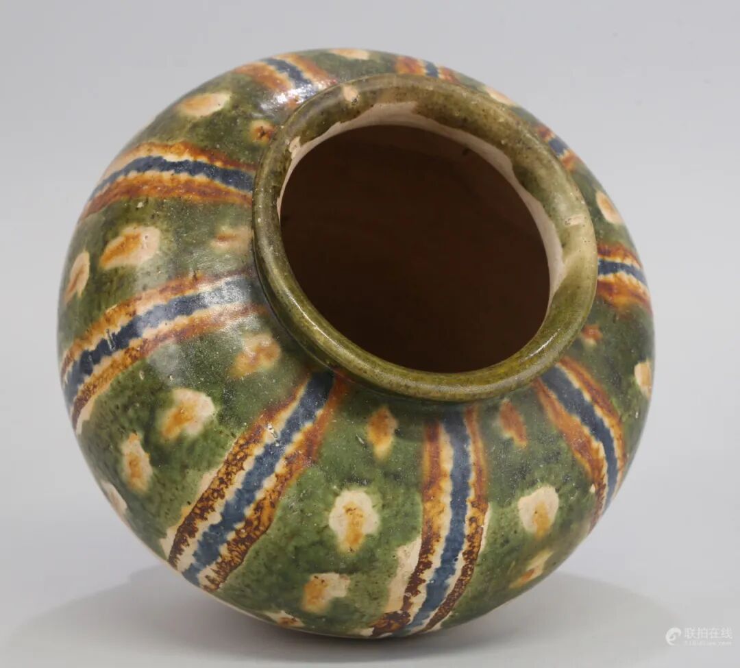 三彩带蓝釉罐