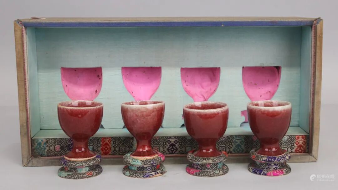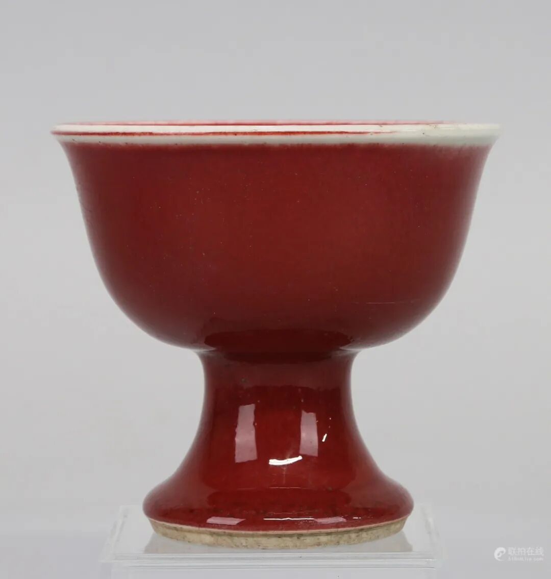 清康熙 郎窑红釉高足杯 四客