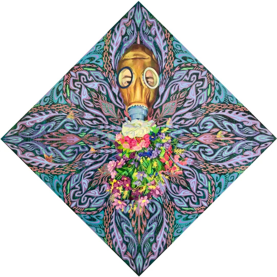 布面丙烯,自喷漆,树脂,硅胶,木炭条,铅笔,杂志,Acrylic on canvas, spray paint, resin, silicone, charcoal stick, pencil, magazine page