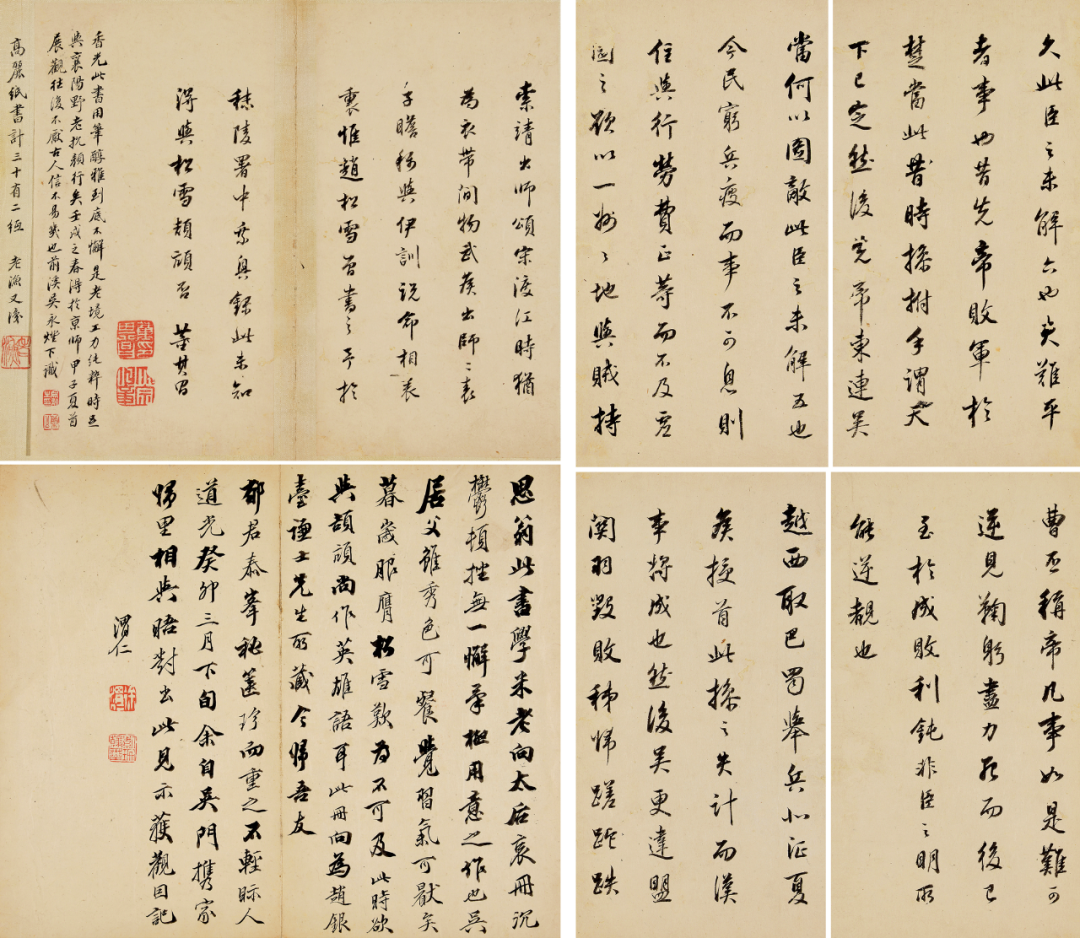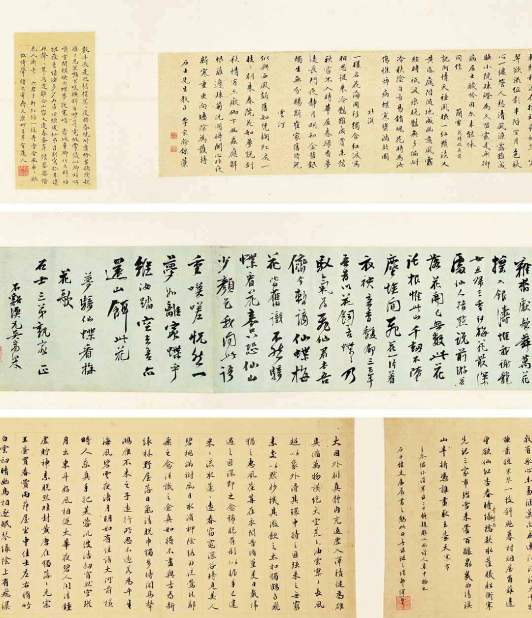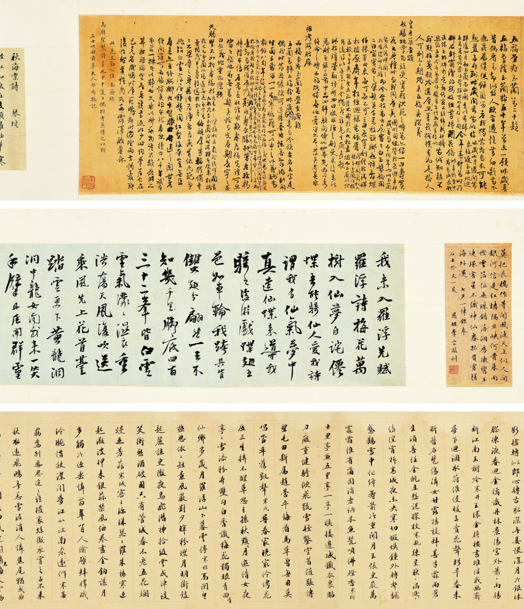 那彦成29.5×131cm;那彦成29.5×130cm;彭邦畴26×65cm;李宗瀚17.5×57cm;邓廷桢22.5 ×11.5cm;法式善20.5×64.5cm;李宗翰题二22×10cm;吴嵩梁22×144cm;佚名一22×9cm;佚名二22×8.5cm。