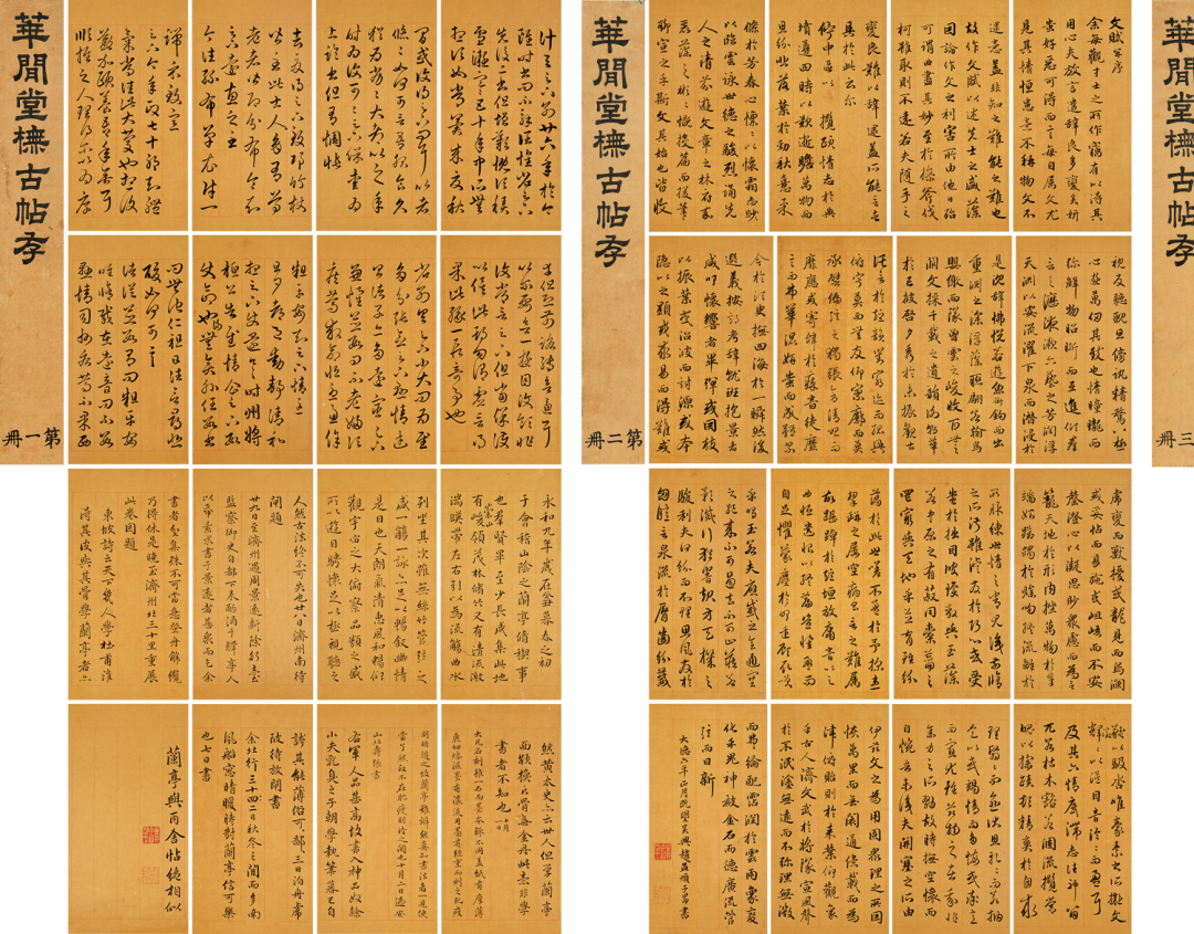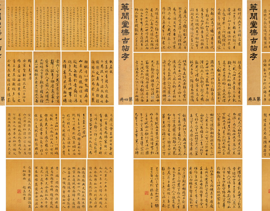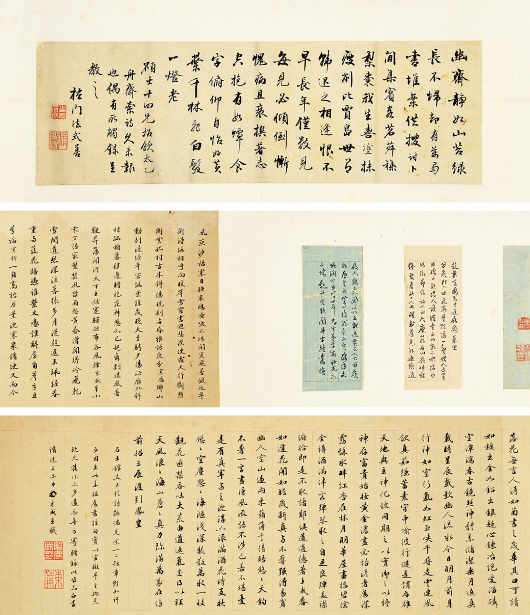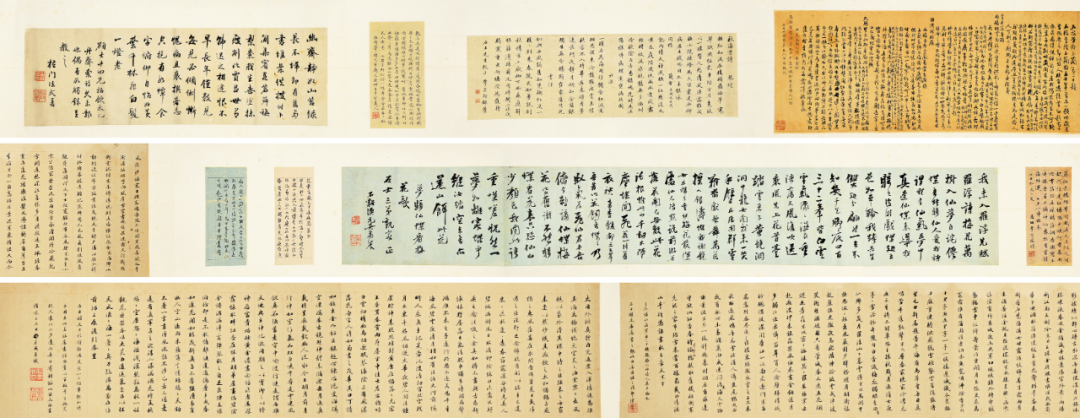 那彦成29.5×131cm;那彦成29.5×130cm;彭邦畴26×65cm;李宗瀚17.5×57cm;邓廷桢22.5 ×11.5cm;法式善20.5×64.5cm;李宗翰题二22×10cm;吴嵩梁22×144cm;佚名一22×9cm;佚名二22×8.5cm。