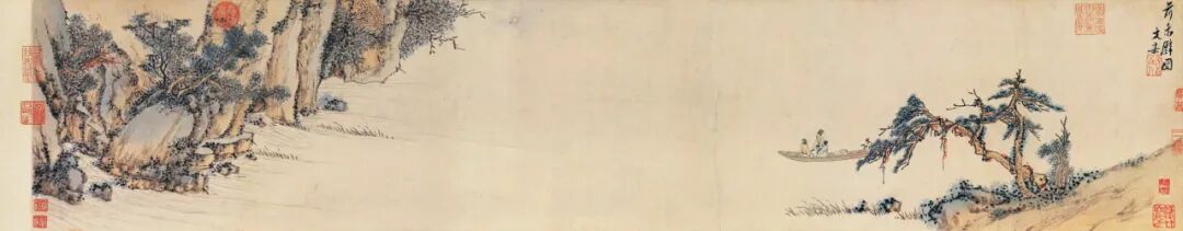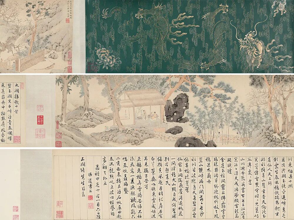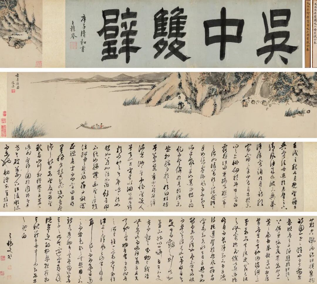 手卷 设色绢本、水墨金粟山藏经纸 1548、1549年作画心:31.5×129 cm.;题跋:31.5×534 cm.