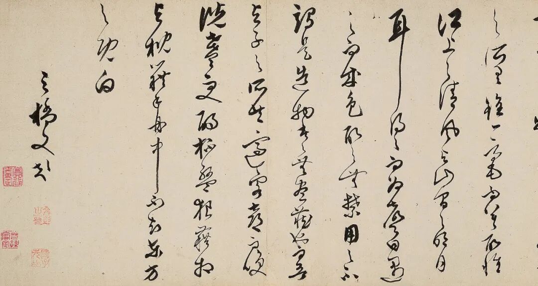 在文徵明二十二岁时,他的另一位老师李应桢看了他写的苏体字,对他说“破却工夫何至于随人脚?就令学王羲之,只是他人书耳!”此话影响了文徵明一生。所以即使他学黄书,也依然是用自己的笔法作山谷书,爽劲放纵,比较有自己的个性。《金山诗卷》中,寓苍倔于端整,以沉着、健达之笔写胸中快意。与黄庭坚的书法相比,笔势更加爽利、简直。他的书法始终是理性而精致的,从个人情结上讲,这与他的学养有一定的关系。学习黄庭坚的书风,使文徵明的书法摆脱了拘役于赵体的那种局限,显出了劲健倔强的一种精神。