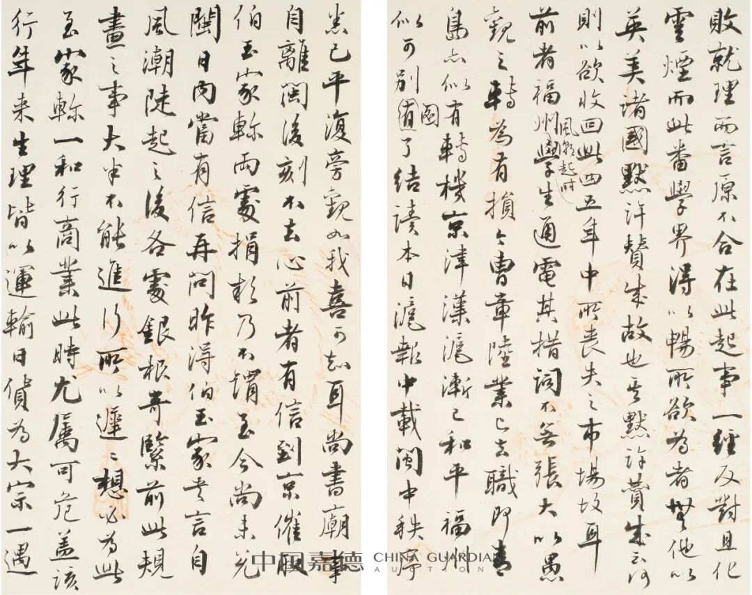 淳斋主人严群系近代启蒙思想家严复先生侄孙,也是中国近代哲学史上有名的学者。本季所见严群旧藏严复珍贵信札均为未曾著录出版的一手资料,对研究严复晚年思想变化具有重要的意义,七个标的共成交169.05万元。另有周作人、陈寅恪、郭沫若、顾颉刚、顾随、章士钊等近代学人书信,兼具历史价值、艺术价值和收藏价值,得到买家推崇,成交亮眼。顾随致沈兼士自作诗词十六首以48.3万元成交,章士钊“再版《疏<黄帝魂>》补充资料手稿”以10.35万成交。