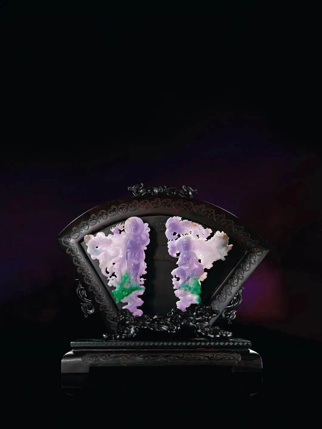 付雪飞大师工作室缅甸天然翡翠糯冰种春带彩摆件 龙凤观音