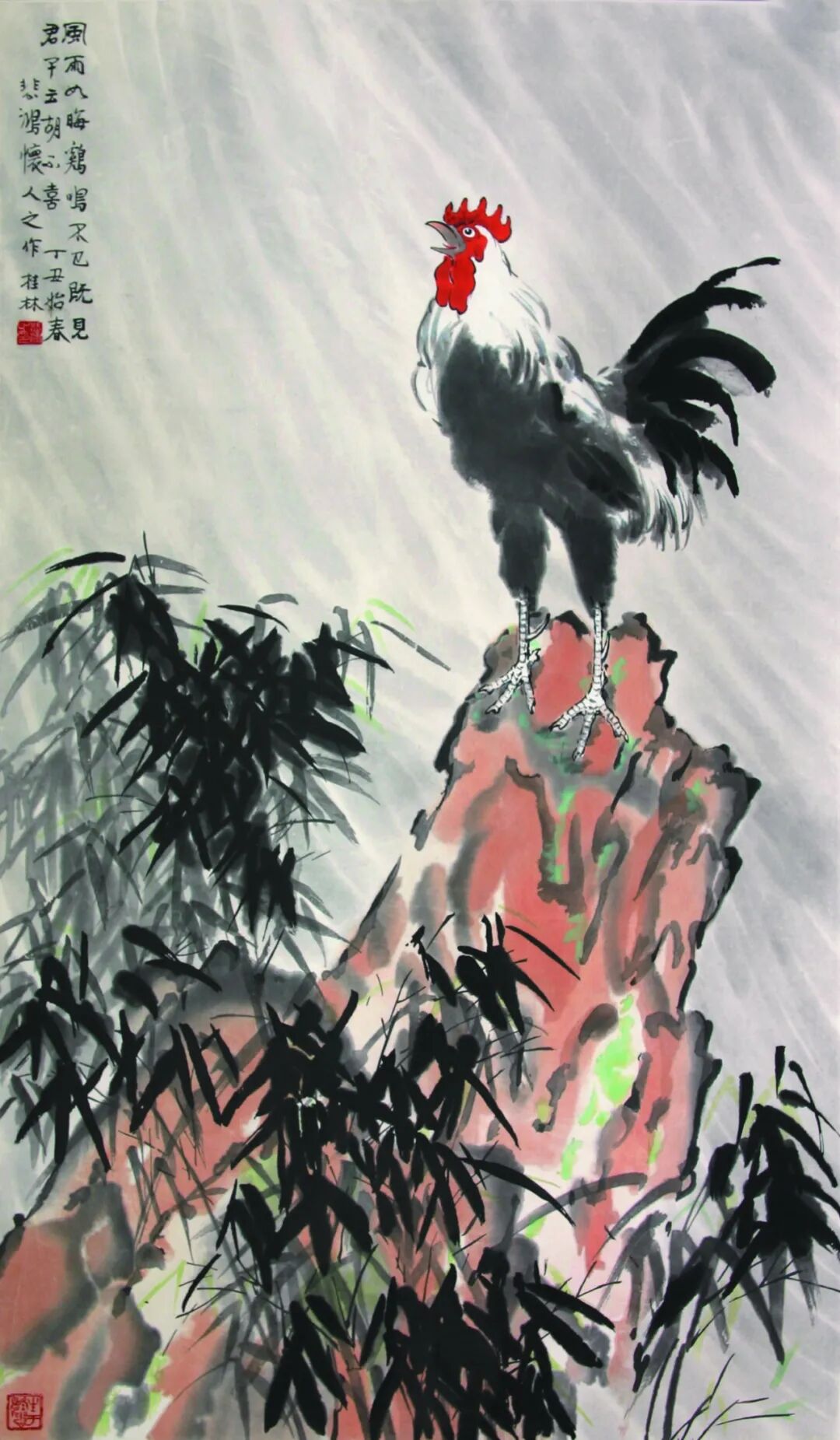 木版水印作品 徐悲鸿《风雨鸡鸣》