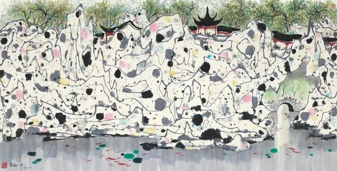 吴冠中认为,绘画抽象就像是放风筝,风筝是作品,是“从生活中来的素材和感受,被作者用减法、除法或别的法”,抽象成的某一种艺术形式,而观众是天空,要让风筝飞上天空,艺术家手中“须有一线联系着作品与生活中的源头”,只有“风筝不断线,不断线才能把握观众与作品的交流”。“风筝不断线”艺术理念的提出和确立,都是从苏州的狮子林开始的,吴冠中晚年接受《苏州日报》记者采访时,非常肯定地说,“狮子林对我有着特殊的意义”。理论从实践中来,后来同样也指导着实践。吴冠中的这条理念后来成为指导他创作的重要思想。而《狮子林》作品的面貌,便是“风筝不断线”理论最直接的体现。