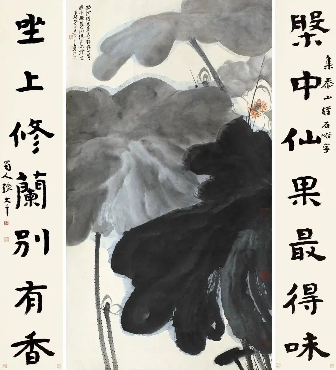 1.盘中仙果最得味,坐上修兰别有香。集泰山经石峪字,蜀人张大千。钤印:大千居士、季爰之印