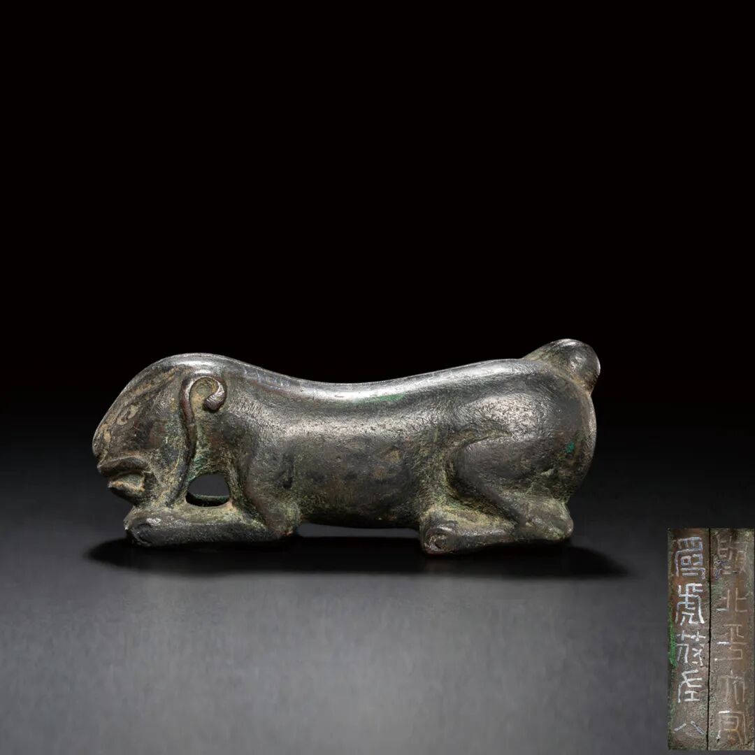 此为一对雌雄双鹿仿生瓷摆件,雄鹿呈立姿,四肢直立昂首眺望,鹿角雄壮有力,双目灵动有神,双耳翘立警觉,神态安详,外表刻工加以装饰鹿的绒毛釉彩,惟妙惟肖。雌鹿呈卧姿,四肢蜷于身下,头上并未生角,鹿首上扬,双目望向雄鹿似有无限依恋,双耳翘立,神态温顺安详,外表运用加彩加以装饰鹿的绒毛与鹿的梅花斑纹。两只梅花鹿一立一卧,神态悠然,动态生动,极是传神。整体造型简洁,线条自然流畅,神情灵动,神韵安静祥瑞,耐人寻味。此双鹿的造型与苏州博物馆藏沈铨《柏鹿图》中所绘双鹿极为类似,可做类比。故宫博物院亦藏有「乾隆粉彩仿生瓷瑞鹿」。