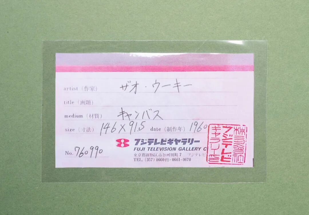 展览:日本春阳会,1963年,第40回「黒い残像展」此幅作品创作于1960年的《黑色残像》是赵无极六十年代抽象作品中的代表作,也是赵无极追求更高层次「神韵」与「意境」的重要作品。此时,以往「甲骨文」系列中的符号属性逐渐消失,更增益了画面的抽象性和抒情性。画中采用了横向分割的构图方式,主要基调为黑色和褐色。在作品的上部,赵无极用大笔刷恣意涂抹出氤氲而深沉的黑色,中部则混合以褐色与红色的油彩。作品下部略带柠檬色调的土黄色打破了画面的沉闷,通过层层累积的厚重肌理感构造出一种相对平静的氛围,与画面上半部分激情的宣泄形成鲜明比照。黄色中掺杂的墨黑笔触形成了类似山脊结构,这也是赵无极六十年代作品的显著特征,从中也可看出赵无极的创作目的是,抛开表面的形式,揭示艺术创作的本质,这是「西方现代抒情抽象派」的典型风格。赵无极在创作中舍弃了对客观世界的还原,描绘精神世界的面貌。画中没有出现规律的笔痕色彩,似乎可以感受到内心世界的奔放不羁。他用充满律动的笔触,表现思想的灵动。这种手法让人看到绘画创作的新方向,丰富了绘画作品的题材范围。更加难得的是他在涂抹中展示了高超的操作技巧,比如他对光感的表现,他对色彩的理解,他对空间的理解,超越了很多同时代画家。
