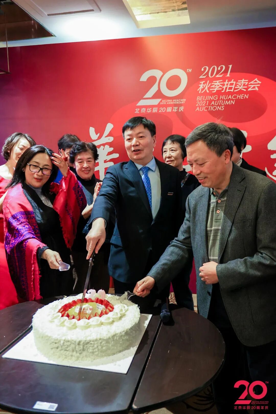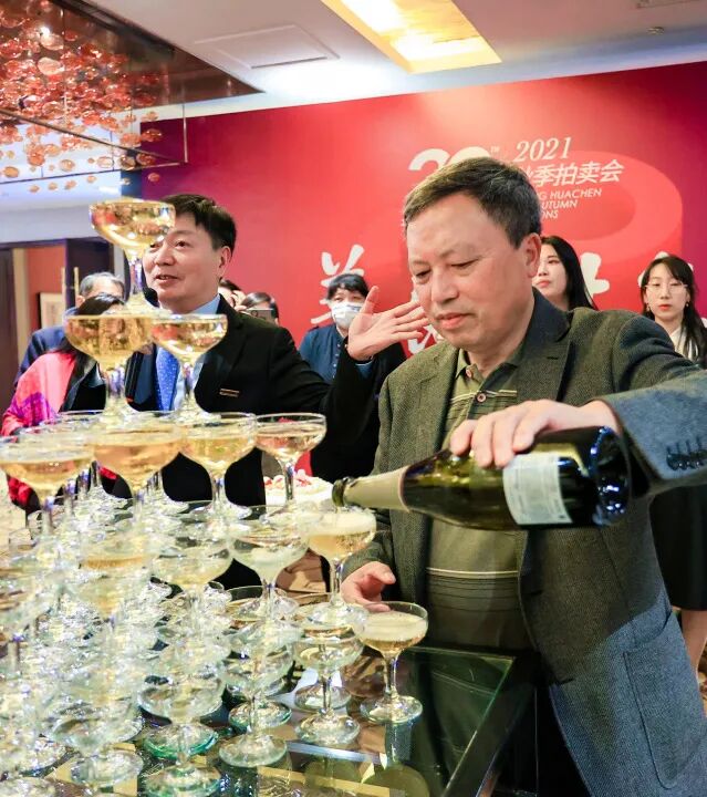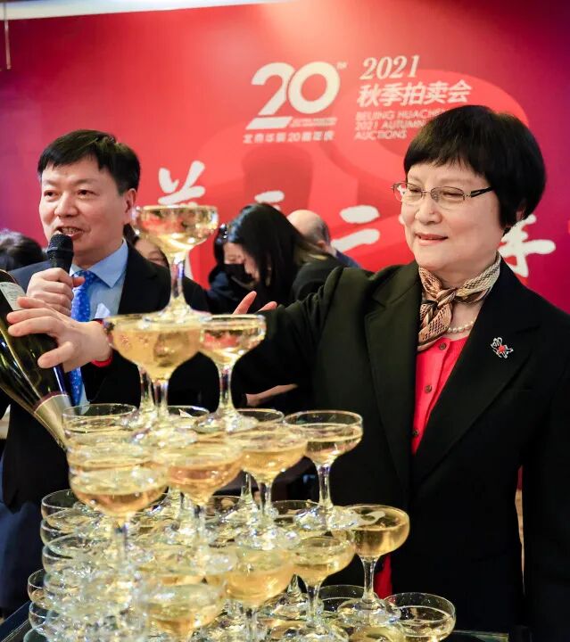 北京华辰2021年秋季拍卖会预展进入第二天,现场人气火爆。北京华辰成立20周年酒会于下午4:00在预展现场举行,新老朋友汇聚一堂,热闹非凡。