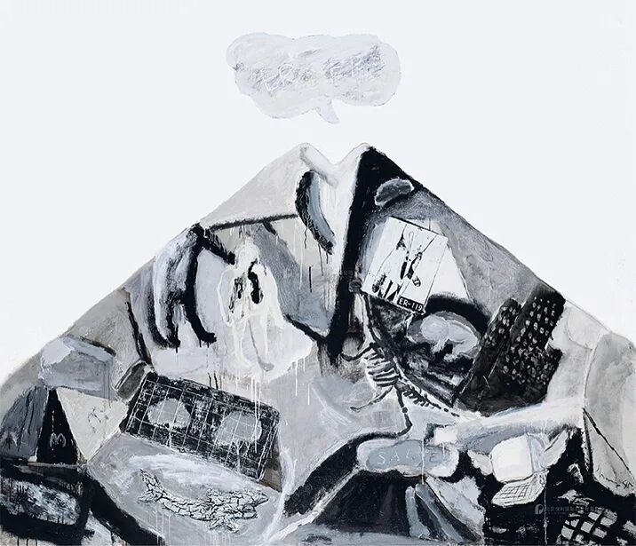 是山,非山。尚扬的绘画就像一个容器,将本土的文化底蕴与他在当代所感知的一切都纳入其中。正如范迪安所评价的,他的这种实验艺术本土化的探索,为当代艺术走出文化观念上西方崇拜和表达方式上的西方模式提供了崭新的经验。《碑》竖立的是人性的坚强意志,它超越了空间的形式,显示着非同寻常的生命张力与精神力量。