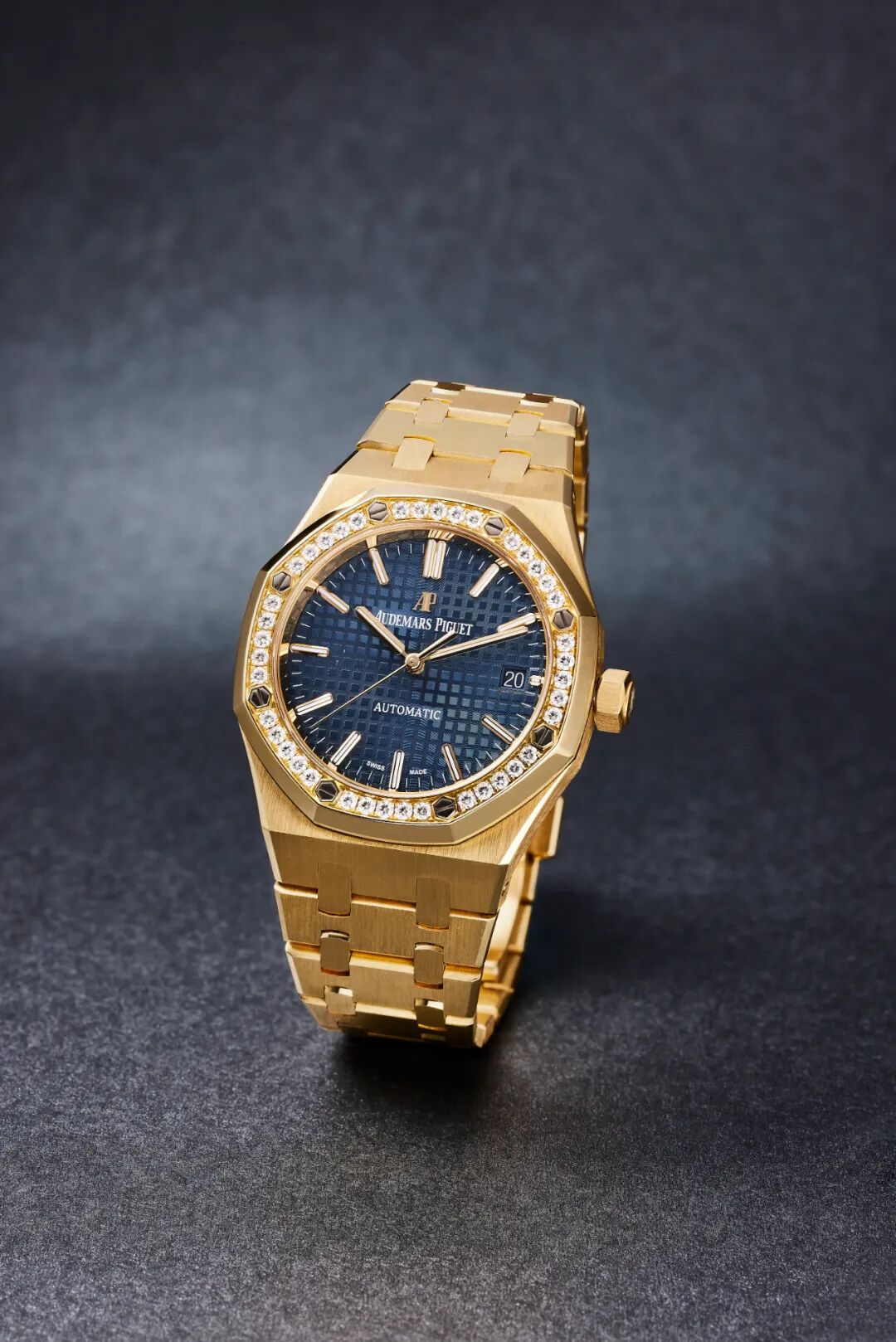 爱彼 皇家橡树系列,型号15451BA.ZZ.1256BA.01 18K黄金自动上弦镶钻腕表 日期显示