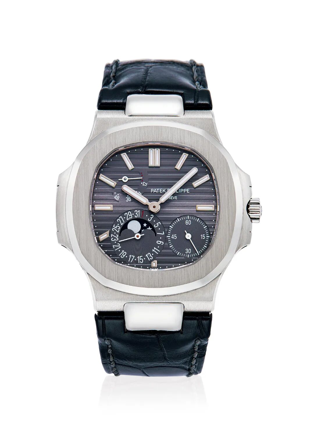 百达翡丽 运动优雅系列,型号5712G-001 18K白金自动上弦腕表 日期、48小时动力存储及月相显示