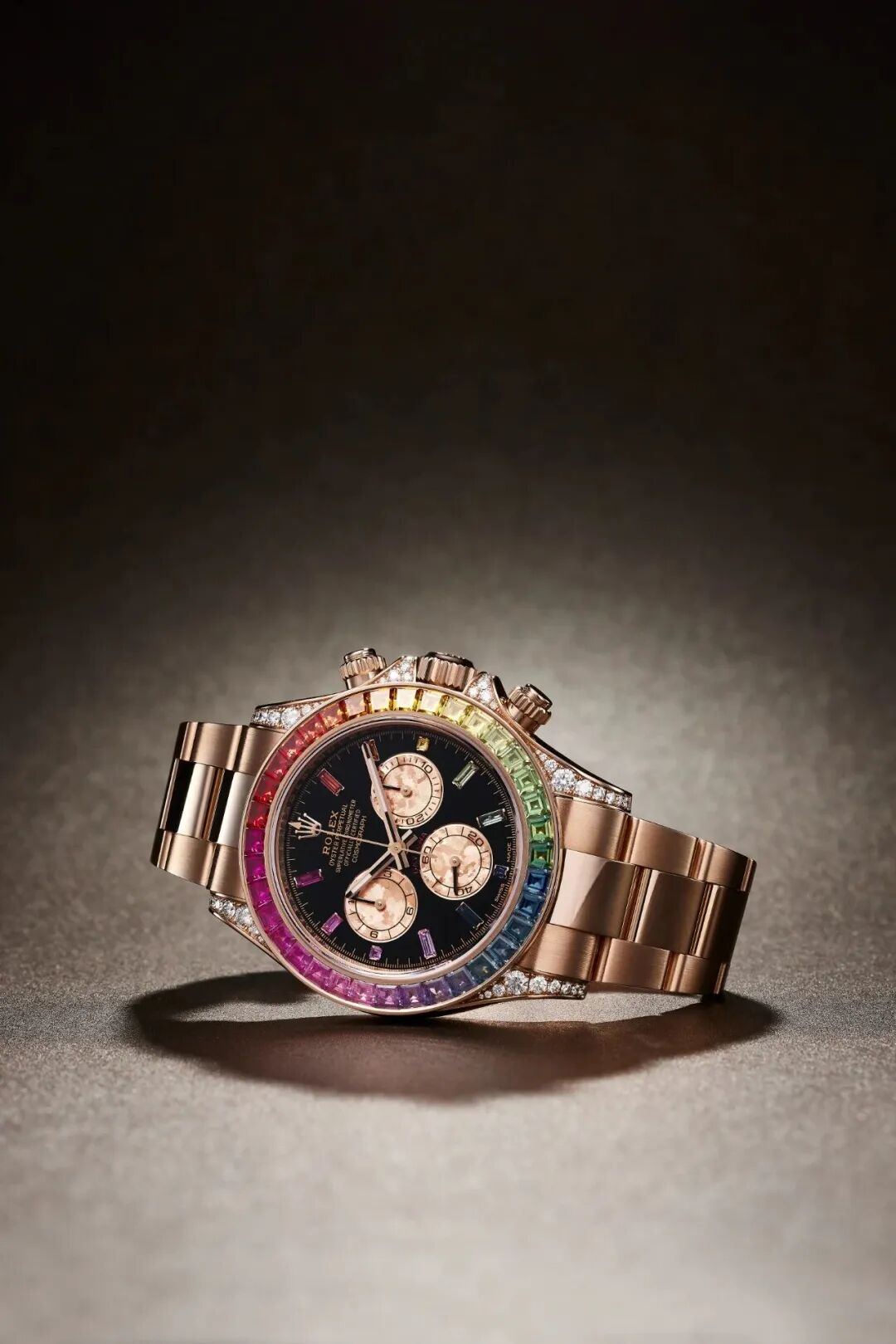 劳力士 宇宙计时彩虹迪通拿系列,型号116595RBOW 18K黄金镶彩色宝石自动上弦腕表 计时功能