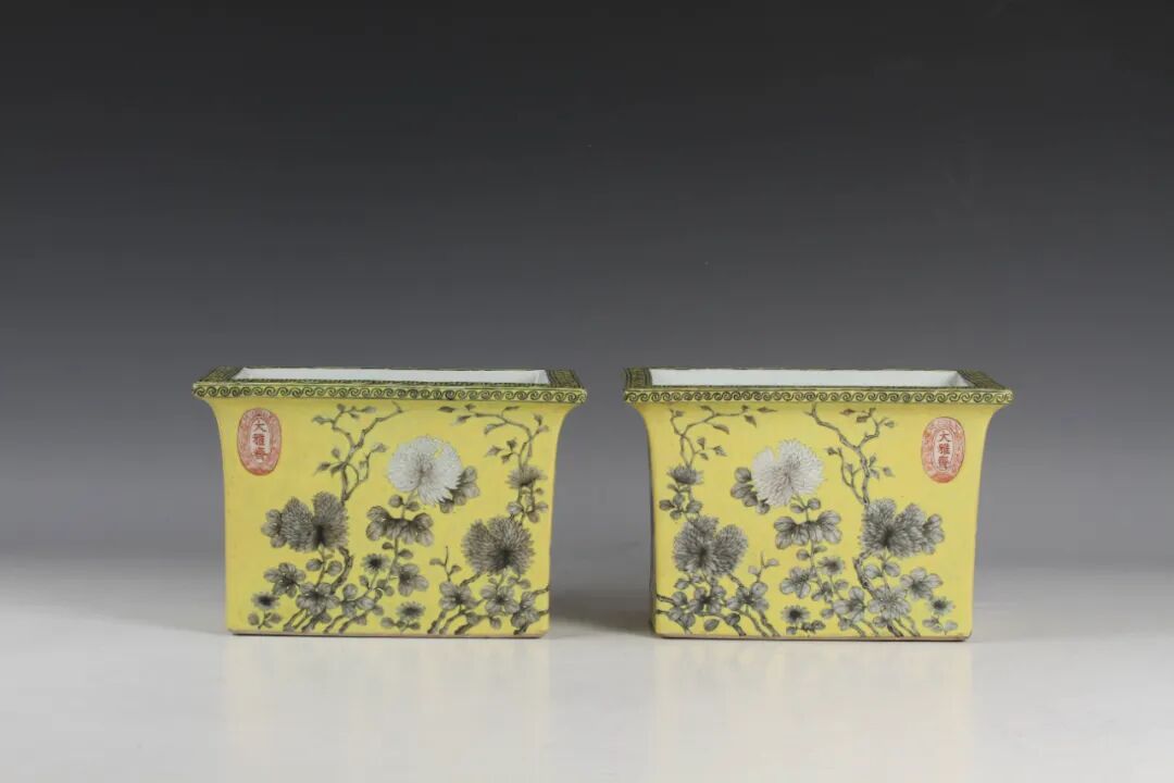 清 铜炉口沿平侈,收颈,鼓腹,圈足微外撇,通体光素,转角圆润。炉身线条流畅优美,造型凝重典雅,铜质密实细腻,蜡茶色皮壳润泽,精光内敛。底部有「大明宣德年制」六字三行楷书款。作者简介:李达,1955年生,福建省莆田人,中国陶瓷艺术大师,集建盏理论和实践之大家,享有「中国陶瓷艺术大师」的盛名,是业内泰斗级别人物。他的作品深受喜爱,被选为中南海紫光阁收藏陈列品,故宫博物院永久收藏品,中国工艺美术馆珍宝馆收藏品。本件拍品撇口,长颈,溜肩,鼓腹,圈足。瓶身主体绘石上菊花,花叶相间,姿态婀娜,并点缀雀鸟蝴蝶嬉戏其间。胎质洁白细腻,施彩粉润柔和,发色秀丽雅致。底以红彩书「大清乾隆年制」六字三行篆书款。尺寸:H 9.2cm,L 12.4cm,W 8.4cm参考:J.C. Dragon II 收藏,1961及1968年两度售于伦敦苏富比,并于1996年于香港苏富比易手,再两度售于香港佳士得。拍品造型仿自商周青铜爵,口沿前后两侧为弧形长流,左右两侧各立龙耳,呈火石红色,底部巧以灵猴、黄蜂及鹿的塑像作足,谐音封侯爵禄,寓意吉祥。外壁模印锦地纹及花卉纹,纹饰清晰,线条流畅,制作精湛。底款为楷书「成化年龙泉造」款。署成化年款之相类瓷器,颇为珍罕。明代中期,使用处州青瓷作为祭器亦见于各地方志的记载,如《平湖县志》卷三「祭器」条载:宣德时始置文庙祭器。俱用处州青瓷 。(雍正初尚存酒海一)万历九年毁于火。二十二年知县黄焰教谕吴锡德更置以木”。同类龙泉窑祭器,见结海堂藏明成化龙泉窑青釉爵杯一对,底署「成化年龙泉造」款。综上所述,作为祭器之用的龙泉窑瓷器尤为罕见,可为文献记载之佐证,尤其值得珍视。来源:苏富比·帕克勃内画廊, 香港, 1983年11月,lot 428本件拍品薄唇口外撇,浅弧璧,平底,下承三足,乃捏塑后粘连而成。通体施白釉,底部涩胎,釉下无化妆土,胎骨坚致缜密,造型古朴舒展。此件剔红盘呈葵花式,平腹,高足,足内髹黑漆。整器线条优美,漆色艳丽。盘心处剔刻团花双凤纹,盘沿正反两侧均饰有缠枝牡丹纹,花叶肥厚,脉络雕刻精细。整体构图饱满灵动,剔法自然圆熟,是明代雕漆的典范。此盒呈圆形,子母口,造型规整大方。盒身通体髤黑漆,光亮润泽,其上以螺钿镶嵌各式花卉蝶纹,画面布局疏落有致,趣味生动,做工精致,栩栩如生。爵为中国古代青铜器常见器物之一,属于酒器,用以温酒和饮酒。常见的形制为深腹,杯口分前后,前面有倾酒用的流,后面有尾,旁有把手,口沿有两柱,下麵有三个尖的高足。本件砚台体积较大,石质坚密,砚面光素,造型简朴,反面满刻铭文。铭文:古圣观象,意在笔前。卦虽画八,理具先天。伊谁制砚,义阐韦编。四维四隅,匪方匪圆。弗设奇偶,全体备焉。玩辞是资,选石效。滴露研朱,用佐穷年。乾隆丙申新正 御铭。 清乾隆时期仿唐宋砚式流行,此仿唐观象砚为其一,为众砚之首,亦为乾隆帝赏赐之物。砚呈八棱形,砚面平坦,开八字形墨池作八卦形样,砚质细密坚润,纹理缜密。背阴刻御铭,法度谨严,规矩雅致。说明:附小山富士夫题签。小山富士夫(1900-1979),是日本中国古代陶瓷史及考古学研究家,也是著名的陶艺家。先后任日本文部省国宝调查室嘱託、东京国立博物馆研究员、东洋陶瓷学会委员长等重要学术职务。在中国上古美术、古代建筑、中国青瓷、宋元陶瓷等领域多有建树。杯五点,撇口,深弧腹,圈足。胎质洁白致密,釉色温润如玉。作者简介:王琦(1884-1937),字碧珍,别号陶迷道人,室名陶陶斋。祖籍安徽,生于江西新建。中国陶瓷美术大师,民国时期景德镇瓷绘名家,为「珠山八友」之首。此件达摩祖师像粉彩瓶,勾线用笔老辣,顿挫有力,衣纹虯结生姿,刚中有柔,整而不乱,线条简略流畅,遒劲有力,尽显精神。设色细腻,渲染层次丰富。此件香炉平口,折沿,束颈,扁圆凸腹,下承三足,肩颈两侧饰绳纹立耳,并附有镂空银盖。全器罩施茄皮紫釉,釉色浓重亮丽,釉水深邃饱满,造型端庄规整。碗侈口,弧腹,圈足,通体施孔雀蓝釉,釉色鲜艳亮丽,碗身遍布细小开片。外壁暗刻花卉纹,底部有「敬畏堂制」四字青花双方框楷书款。缸唇口,短颈,鼓腹渐收,平砂底,浅圈足,束颈绘连珠纹,下饰一圈如意纹,主体绘缠枝莲纹,胫足处绘仰莲瓣。整器器型端庄稳重,胎体厚重坚实,釉色肥厚白净,画工细腻,笔法飘逸。盘圆形,折沿,盘沿外侧饰以金色印花锦纹地,其间各有四大四小八组开光,绘有乡村风景。盘心以传统粉彩技法描绘人物故事图。此盘的主题纹饰是中式广彩风格,但盘的边饰却更多的是西洋风格。清乾隆时期,这类风格纹饰的广彩器,统称为「洛克菲勒」彩,究其来历,是洛克菲勒家族(尼尔逊·洛克菲勒)在十八世纪末向荷兰东印度公司委托定制的产品。尺寸:H 12.5cm,L 18.5cm,W 13cm大雅斋瓷器,属于堂名款瓷器,是清慈禧太后专门为自己设计、烧制的御用瓷,堪称晚清最为著名的御窑瓷器。此对花盆呈长方形,胎体厚重,造型规整。通体以黄釉为地,其上用墨彩描绘菊花图,内壁及底部均施白釉,清新淡雅,彰显文人风骨。花盆近口沿处有椭圆形双龙戏珠纹「大雅斋」红彩楷书印,底有矾红「永庆长春」四字双行款。本件拍品形制规整端庄,胎釉精良,莹白温润。金彩口沿下饰一周如意云头纹,肩部两道描金弦纹间饰缠枝花卉托寿字,近足处饰变体莲瓣纹一周,器身绘粉彩百蝶富贵图。全器设色丰富,笔触工整,明快妍丽。底部以红彩书「大清光绪年制」六