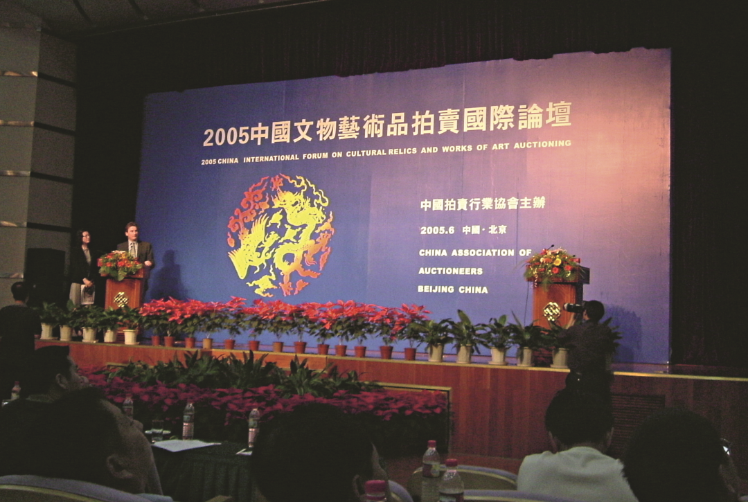 2005年6月,由中国拍卖行业协会主办的“2005(首届)中国文物艺术品拍卖国际论坛”在北京举行。上图为此次论坛期间举办的媒体与拍卖互动环节。
