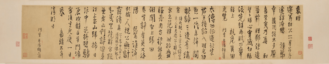 本幅写于乾隆二十一年(1756),为金农艺术面貌最成熟时的晚年作品。出自玉斋旧藏,一直流传有绪,从晚清至近代均由精鉴之人收藏,而且着录甚丰。