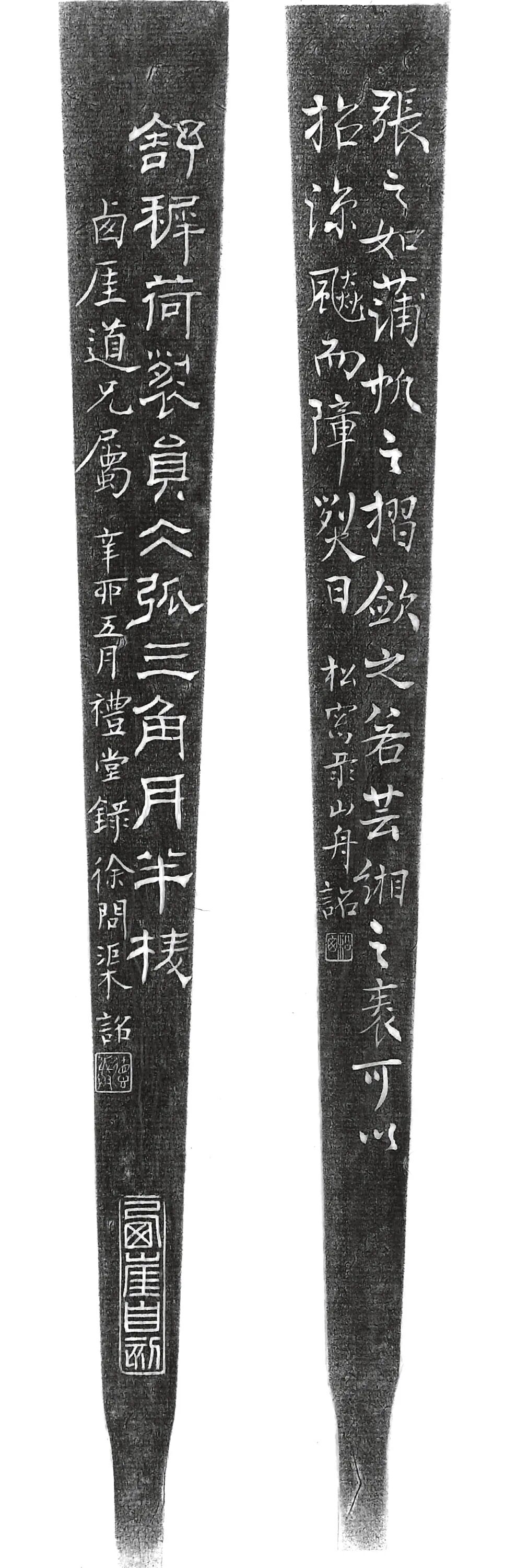 民国 金西厓刻 禇松窗书行字 又书隶书扇骨