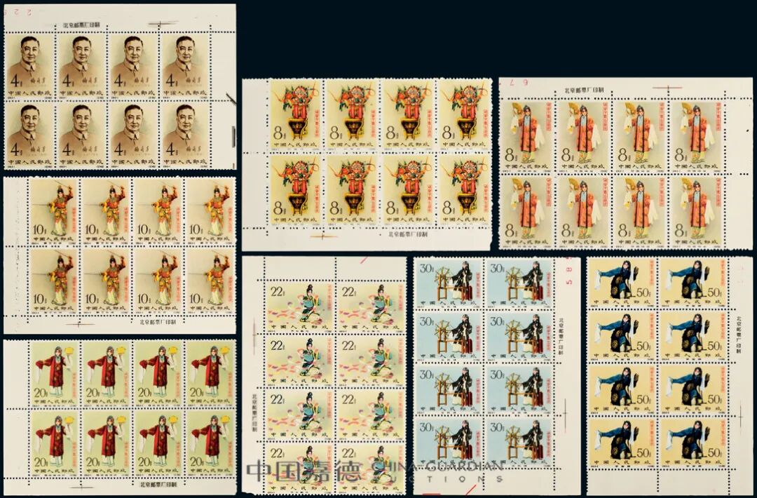 市场少见的“★纪念梅兰芳有齿邮票八方连八全”以40.25万元夺得本场成交价魁首。名家旧藏、目前所知贴勇八一建军纪念邮票最多之实寄封“C 1945年左右山东莒县寄天津封”以21.85万元成交。JP系列邮资明信片最珍贵之品种“PS 1992年JP32中国友好观光年邮资明信片‘大阿福’(未发行)一枚”以18.4万元成交。