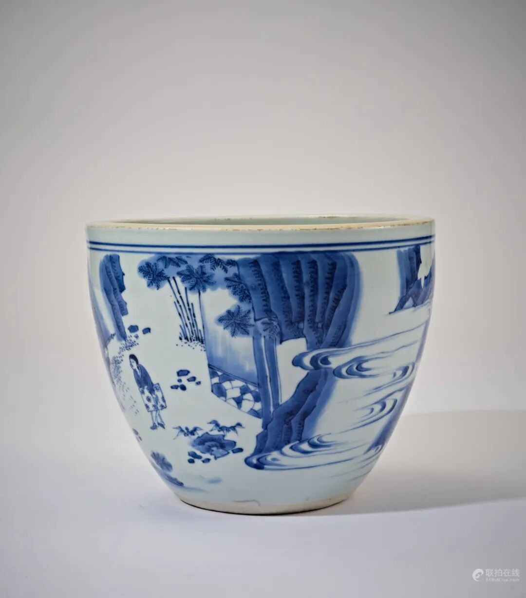 明崇祯 青花通景绘「蟾公折桂」图案缸