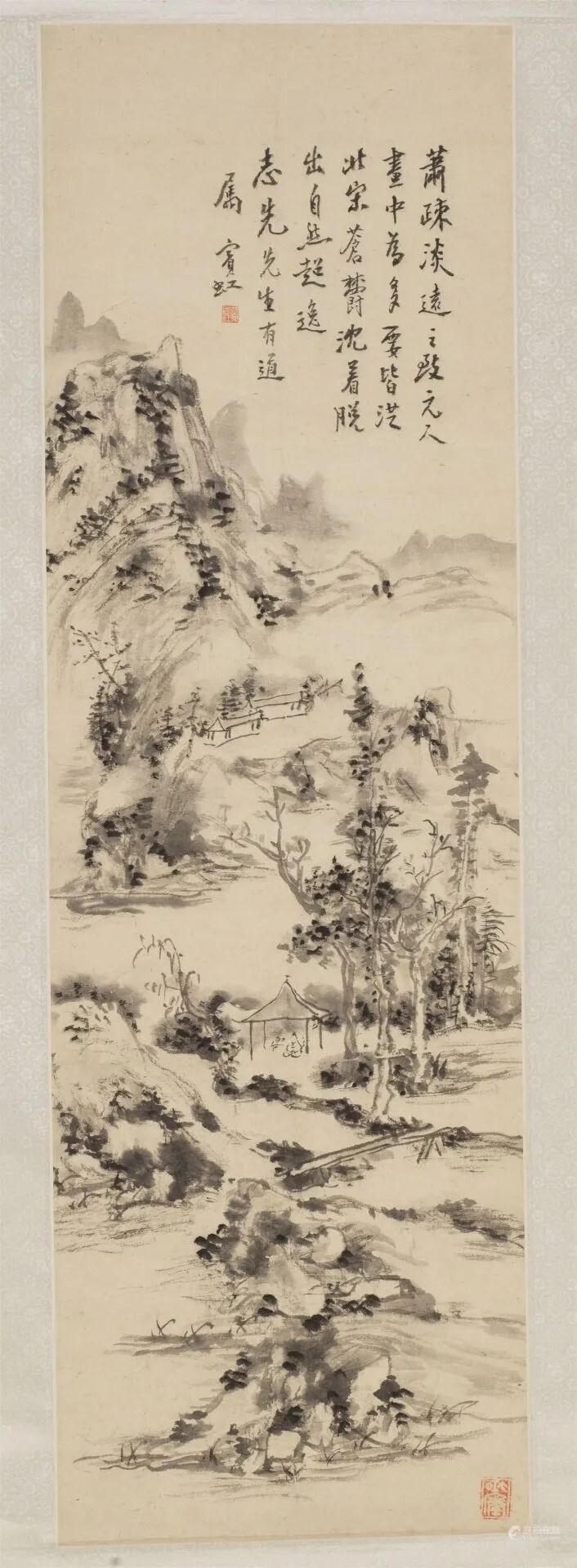 题识:萧疏淡远之致,元人画中为多,要皆从北宋苍郁沉着脱出,自然超逸。志先先生有道属,宾虹。