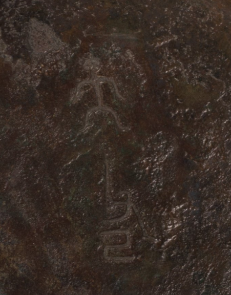 西周是青铜簋发展鼎盛的时代,种类繁多,唯无耳簋量少,属非常罕见之器。在商末周初的短期使用后,无耳簋基本不见,加之纹饰独特、字口清晰,更加弥足珍贵。此式天父己簋器型规整,铸造精良,纹饰繁复,舒朗有度,古拙典雅,根据其造型、纹饰、铭文书写特征,可推此件为初年器。本品铭文字体走向与「天父己」铭文拓片曾被著录于中国社会科学院考古研究所编纂的《殷周金文集成》(编号01602),十分相似,铭文、释文皆为可考;北京匡时2017年一件西周早期,铭文为「山丁丮册」的无耳簋以HKD 2,360,000成交,可资参考。