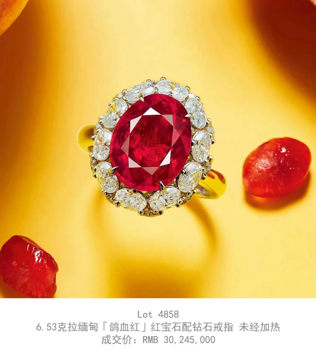 6.53克拉缅甸「鸽血红」红宝石配钻石戒指 未经加热
