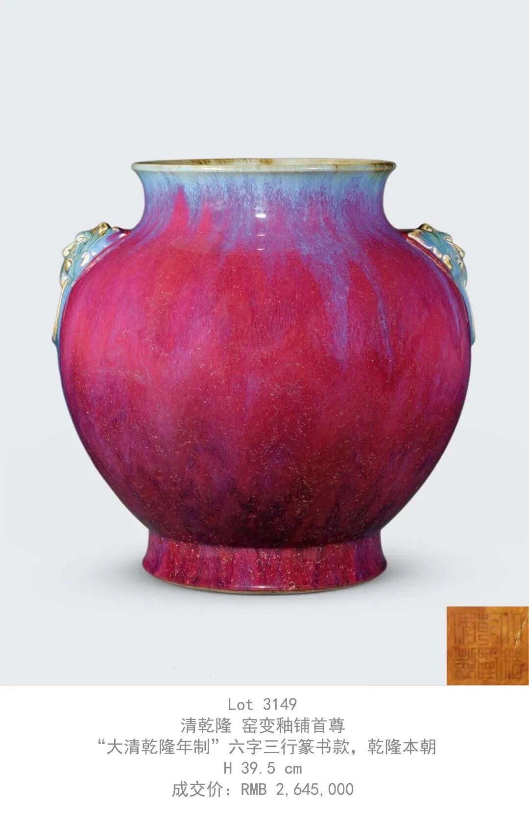 拍品成交价过千万元人民币