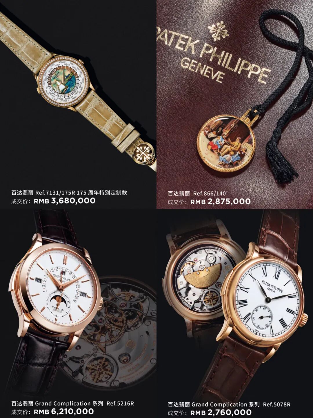 时隔近十年,腕表专场秋拍重新开启,强势回归,历史性地创造了四大纪录:百达翡丽 Ref.7131/175R 175周年特别定制款、天王级别百达翡丽 Ref.5216R均刷新该型号全球拍卖纪录;珐琅盘三问百达翡丽Ref.5078R刷新该型号本季全球拍卖纪录;本场唯一一枚由百达翡丽特聘珐琅大师J.L.PETER绘制瑞士著名画家Albert Anker人物作品为题材的珐琅怀表,经过多轮竞拍,远超估价,傲视群雄。